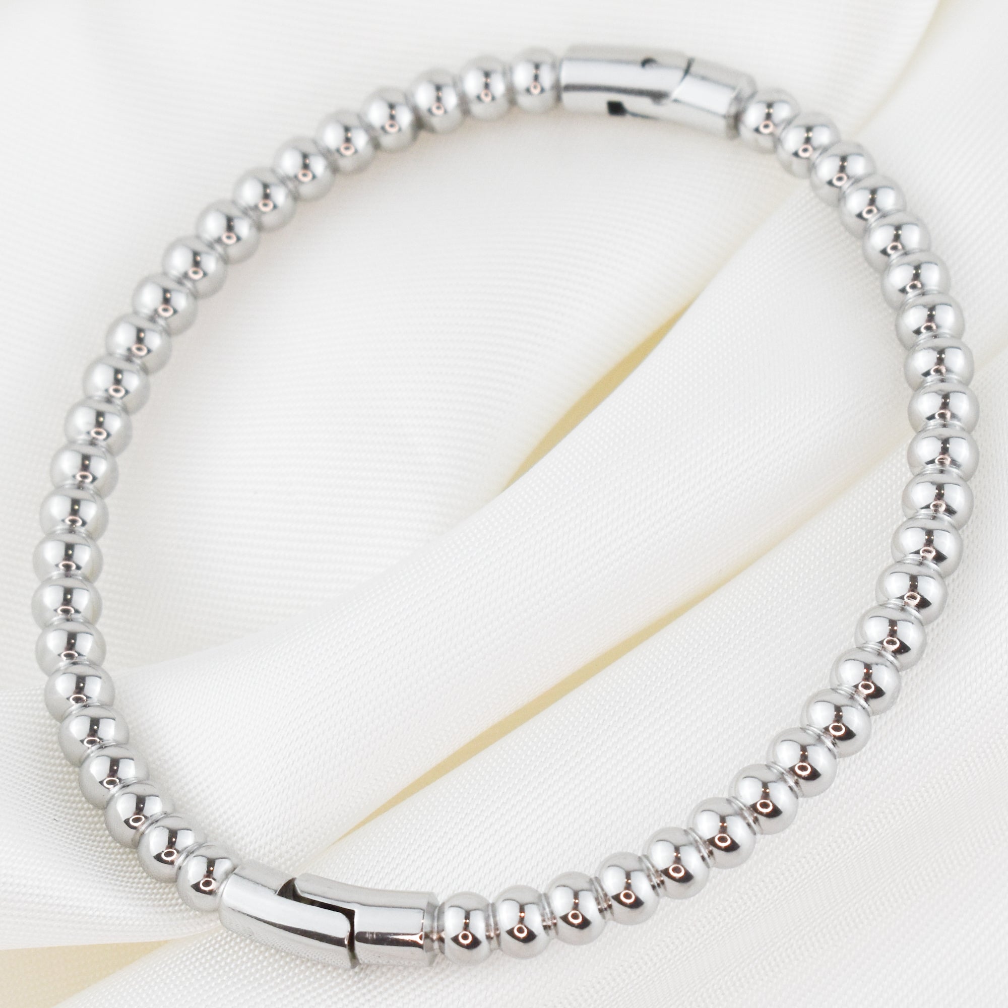 The simplicity of the steel beads creates a modern and sophisticated aesthetic. This bracelet is perfect for those looking for a refined and understated style, adding a touch of sophistication to any look.