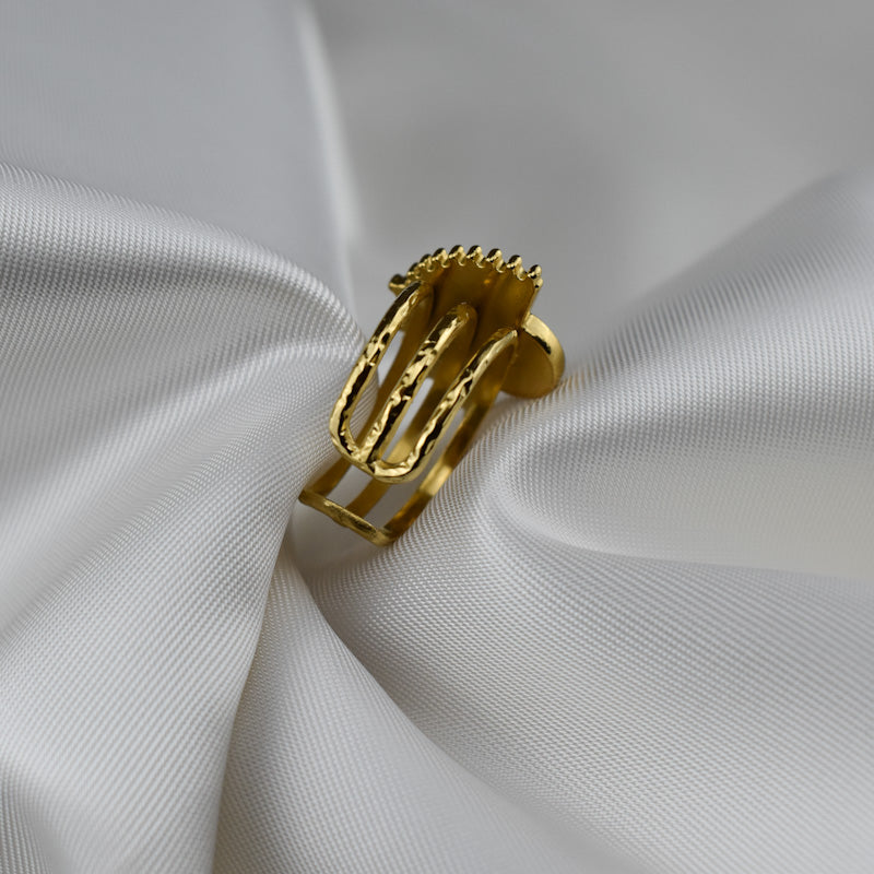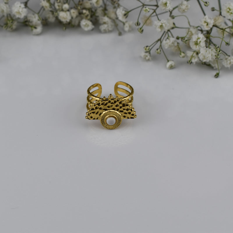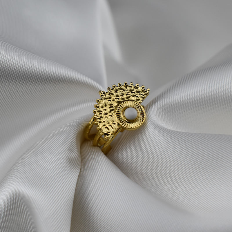 SYDNEY - Triple Ring in Gold Steel with White Stone