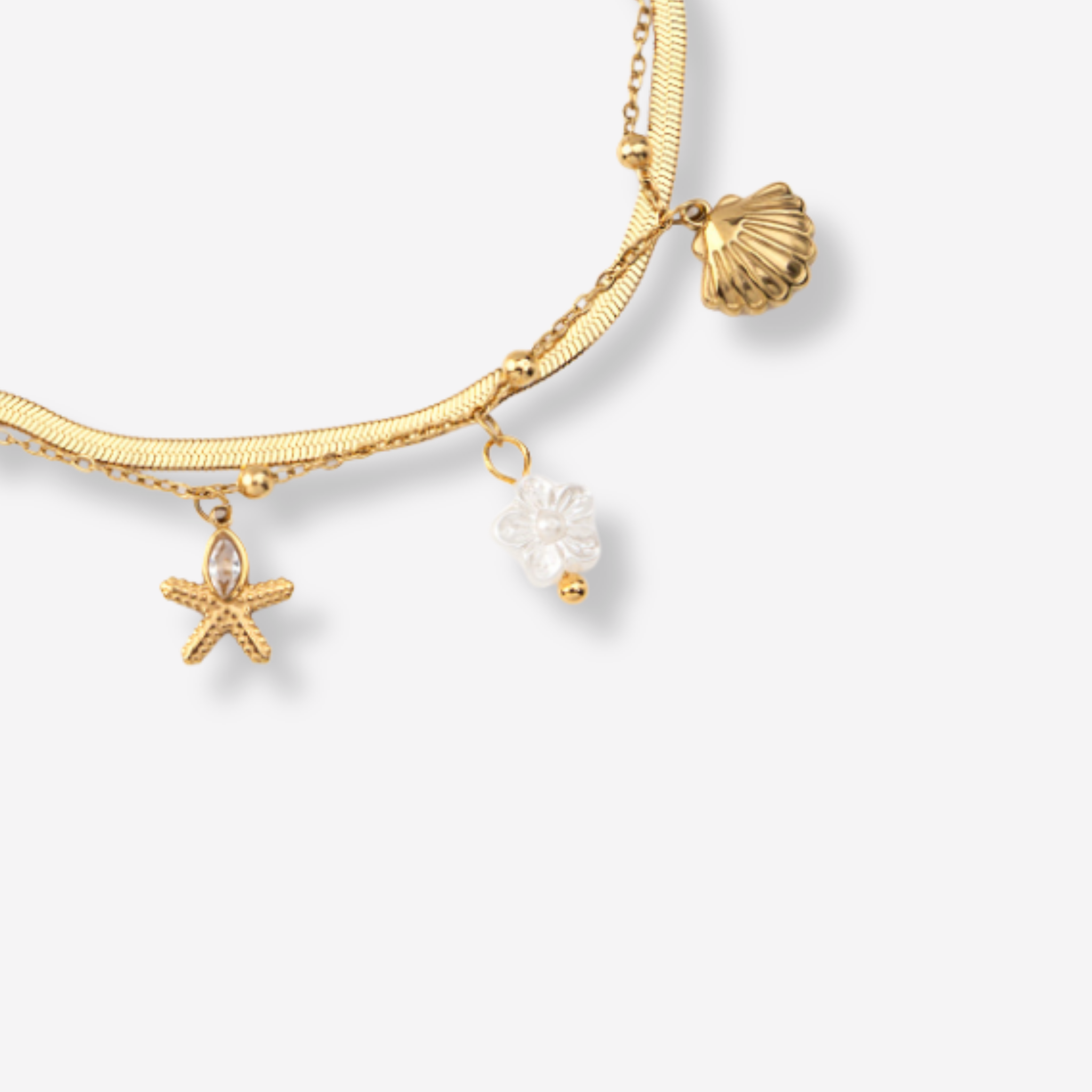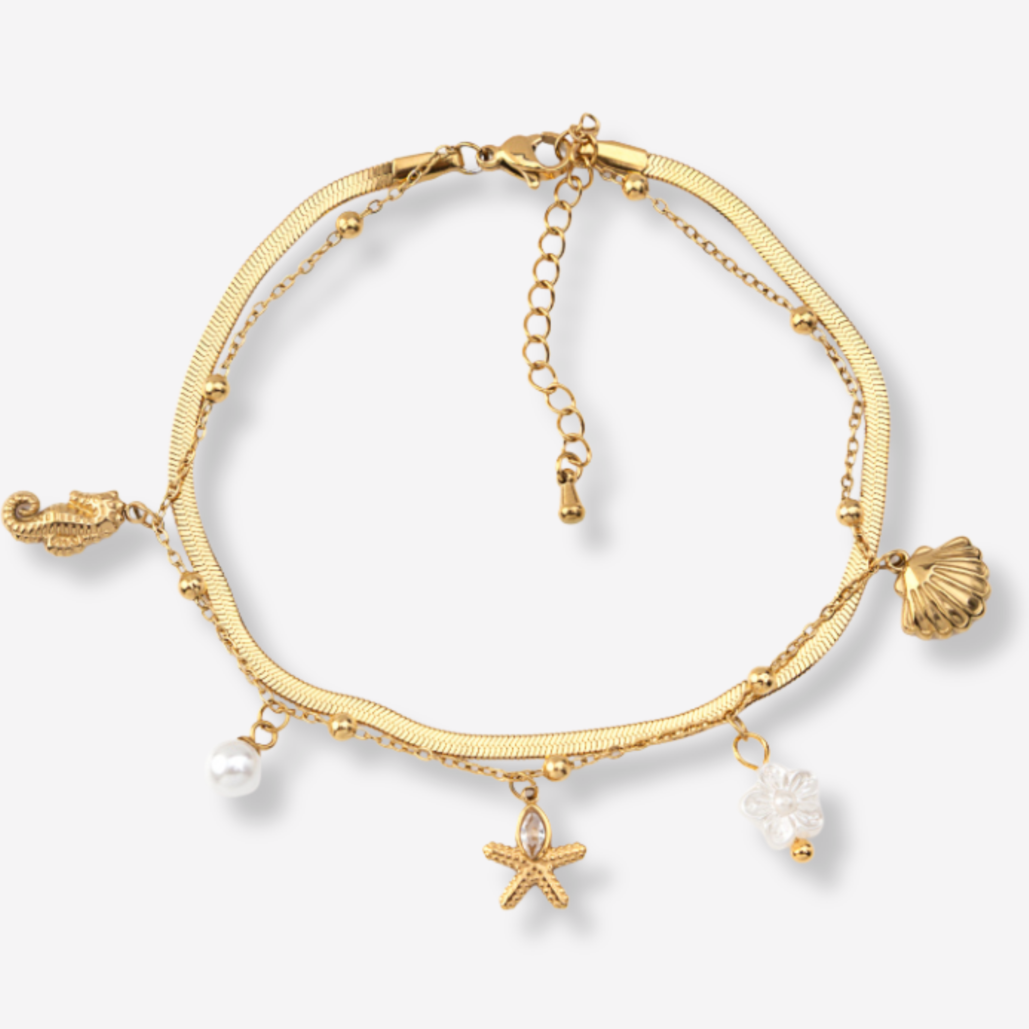 Tornozeleira Dupla Estrela do Mar em Aço Inoxidável
