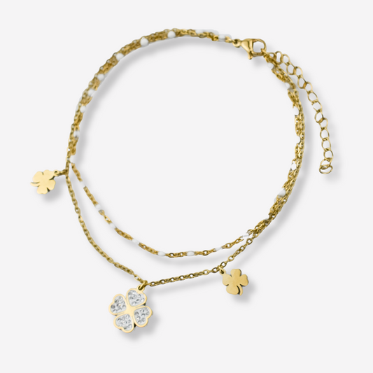 Bracelet Double Pied en Acier Inoxydable avec Trèfles