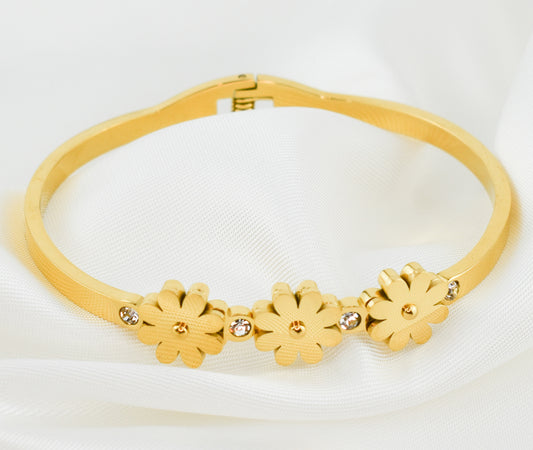 Flower – Bracelet Rigide en Acier avec Fleurs et Paillettes