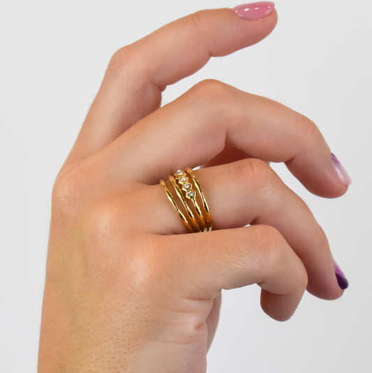 GRACE- Bague Quadruple en Acier avec 5 Diamants
