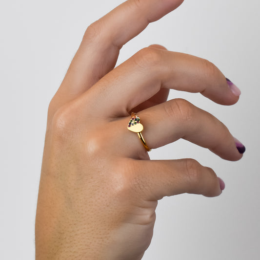 Hope- Bague en Acier avec Coeur et Strass Colorés