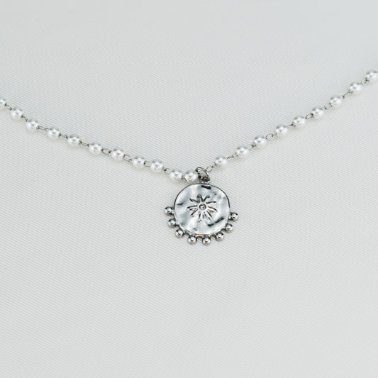 CLAIRE – Collier Acier 2 Mailles, Perles et Médaille Diamant