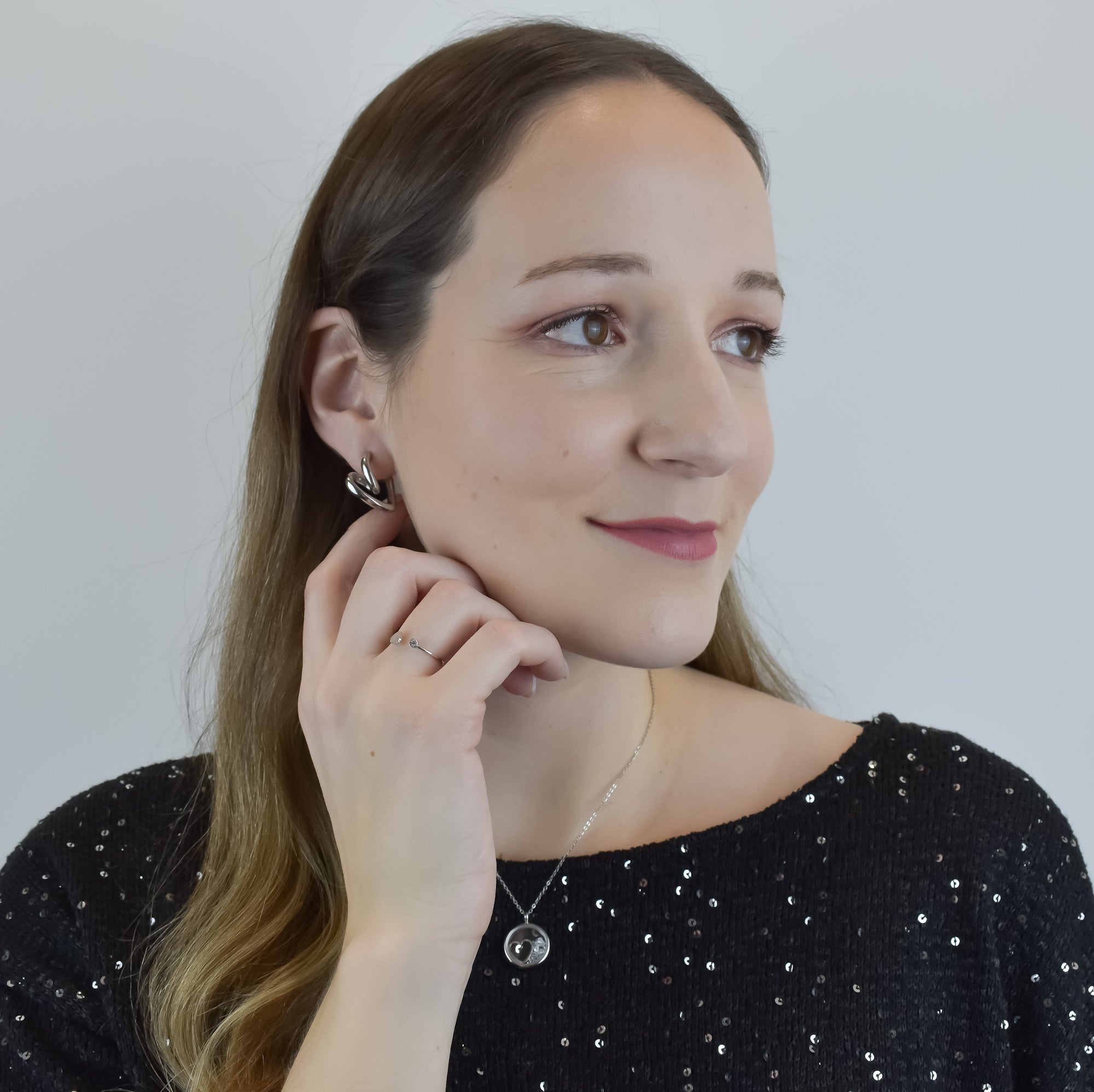 ALICE – Boucles d’Oreilles Demi Soleil en Acier avec Pierre Blanche