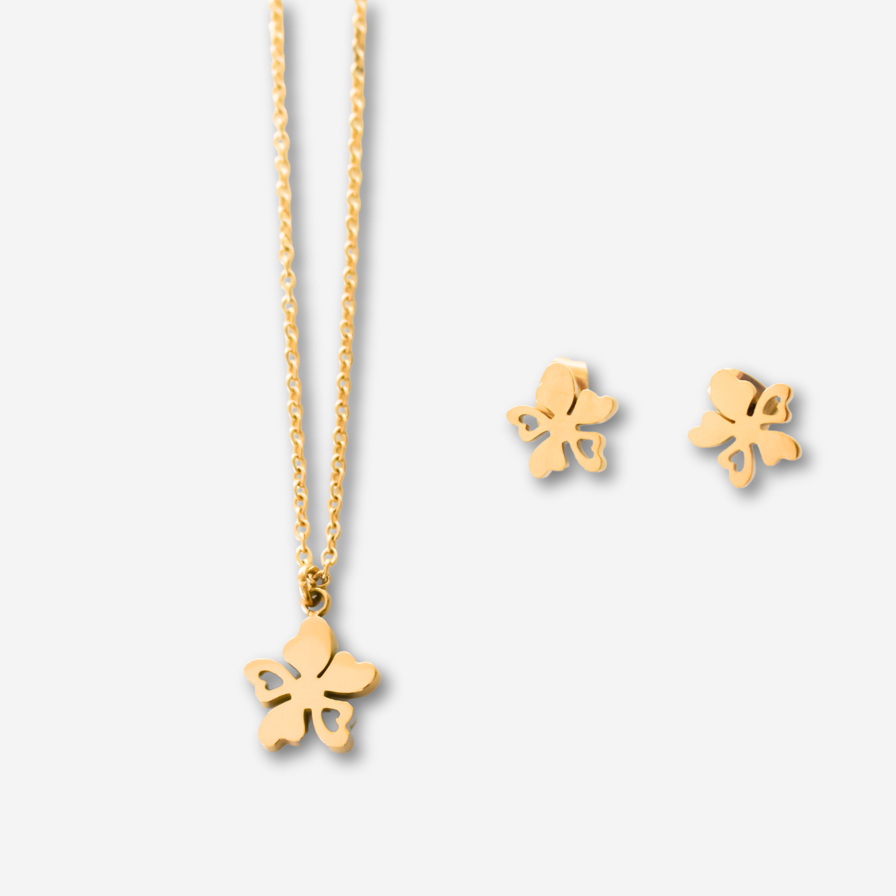 Colar e Brincos Flor em Aço Inoxidável com Cartão Madrinha