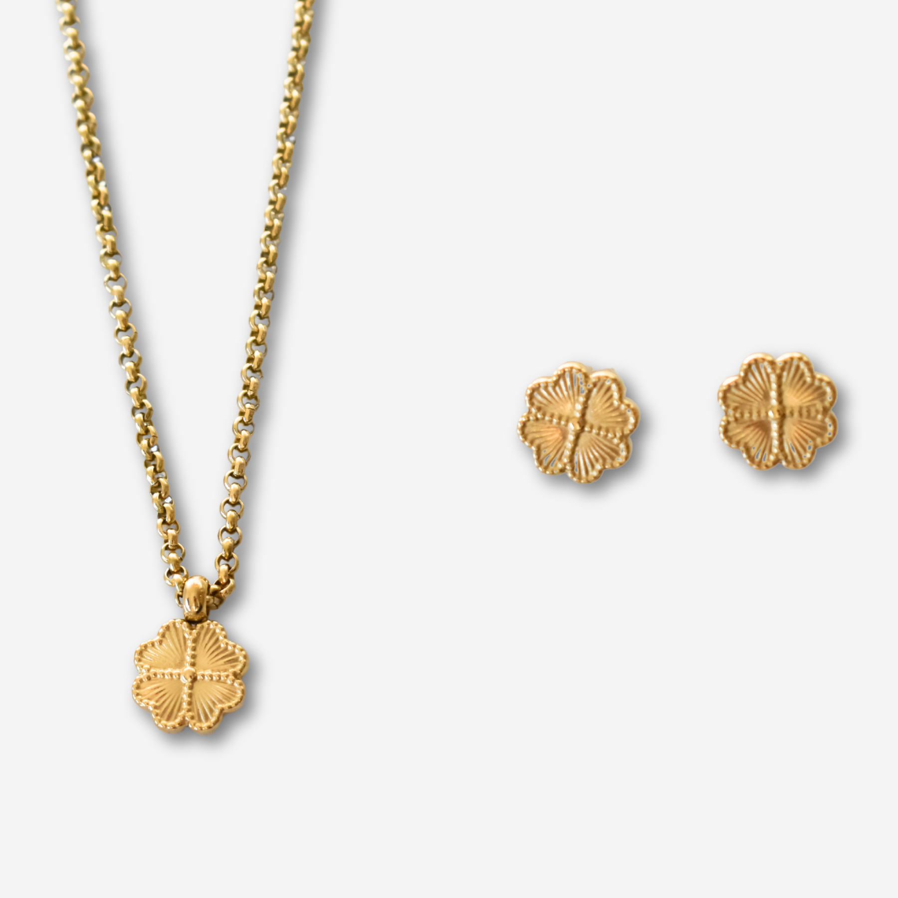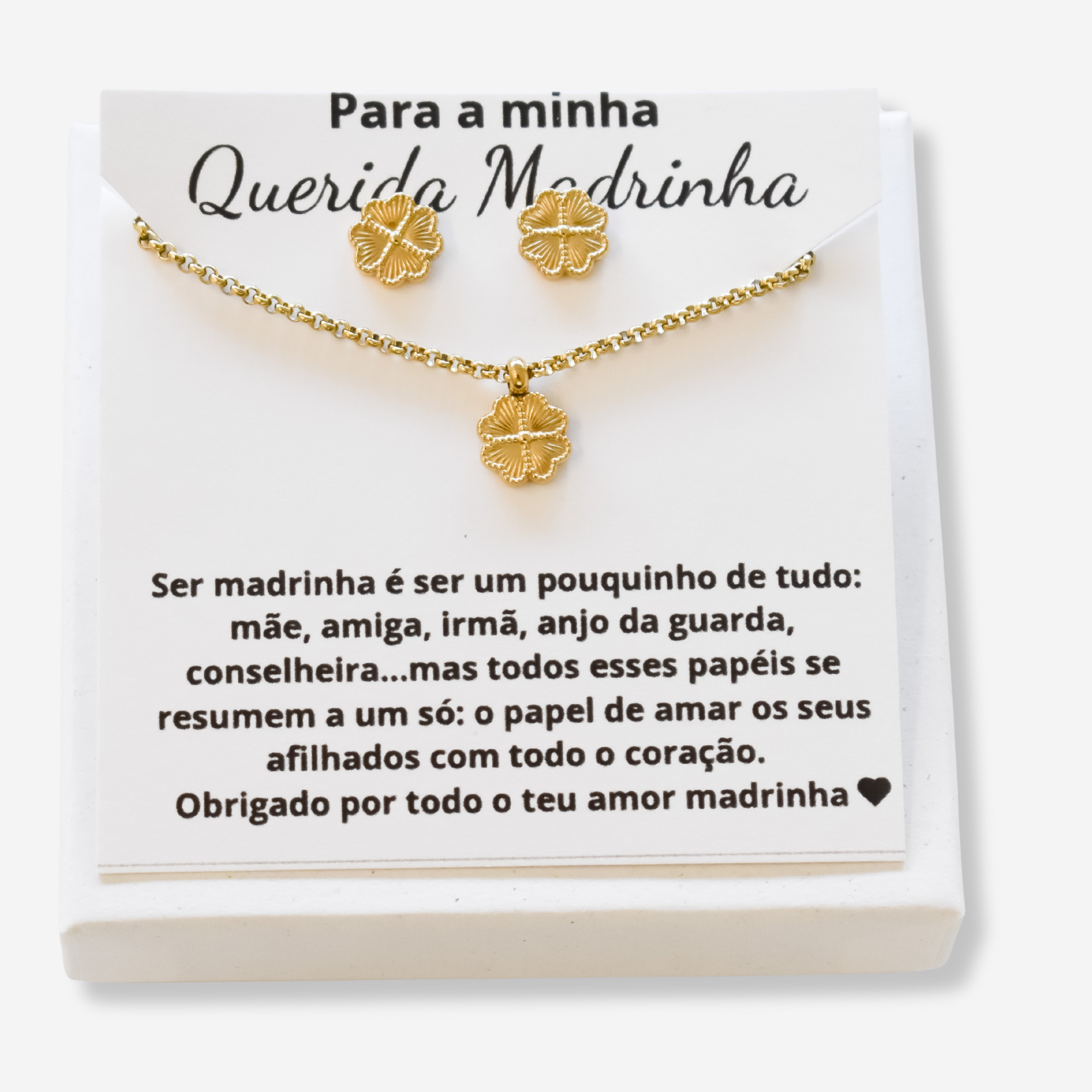 Colar e Brincos Trevo em Aço Inoxidável com Cartão Madrinha