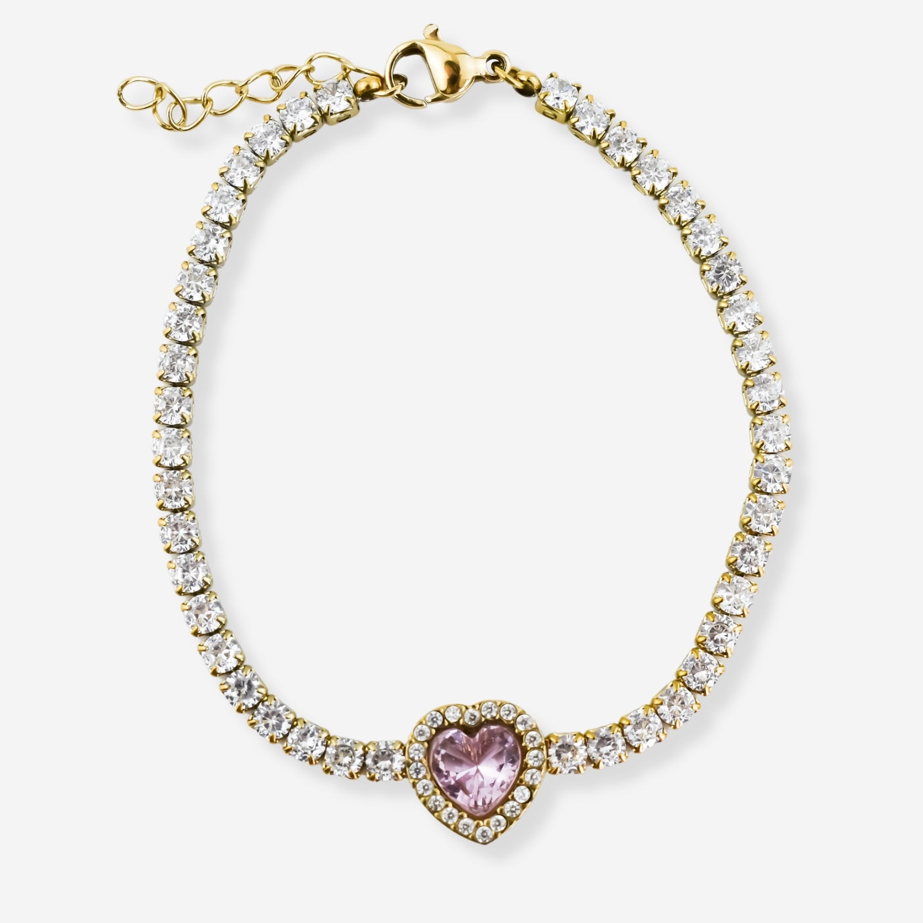 Parure Diamant – Boucles d'Oreilles, Collier et Bracelet avec Zircones et Coeur Rose