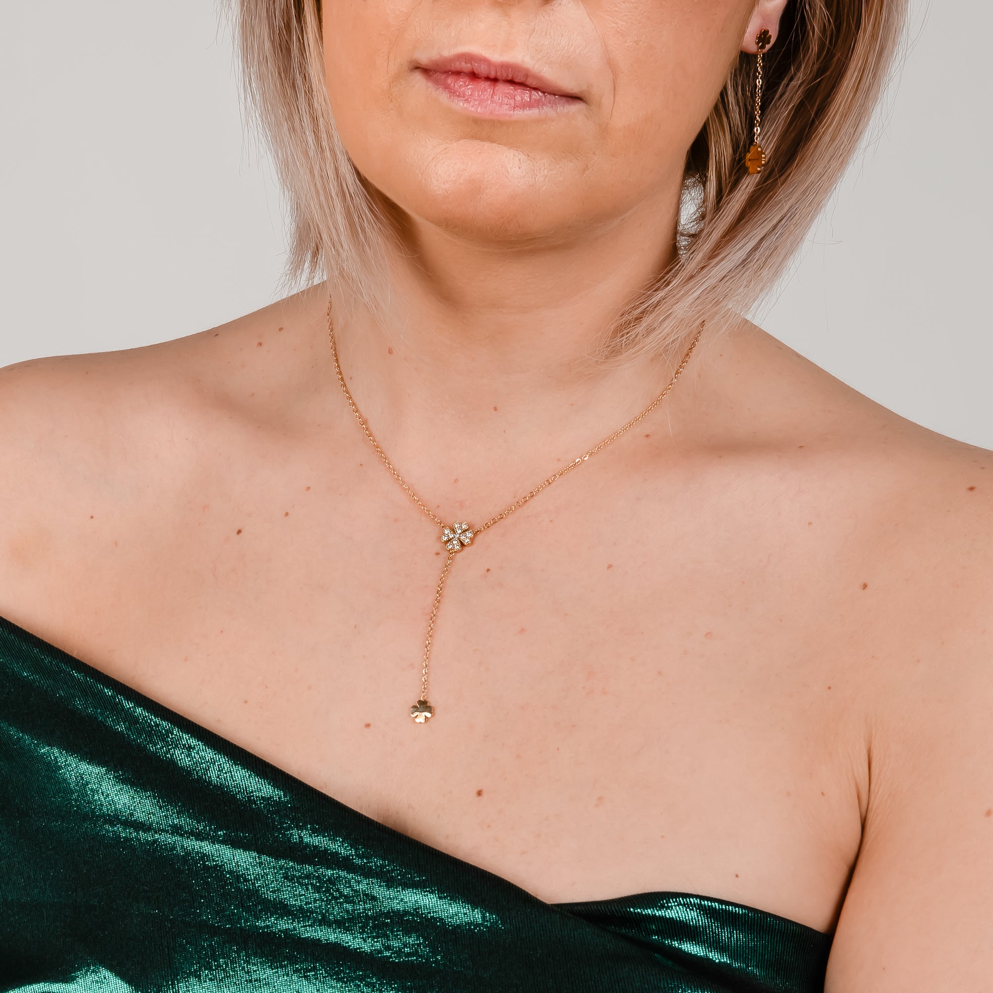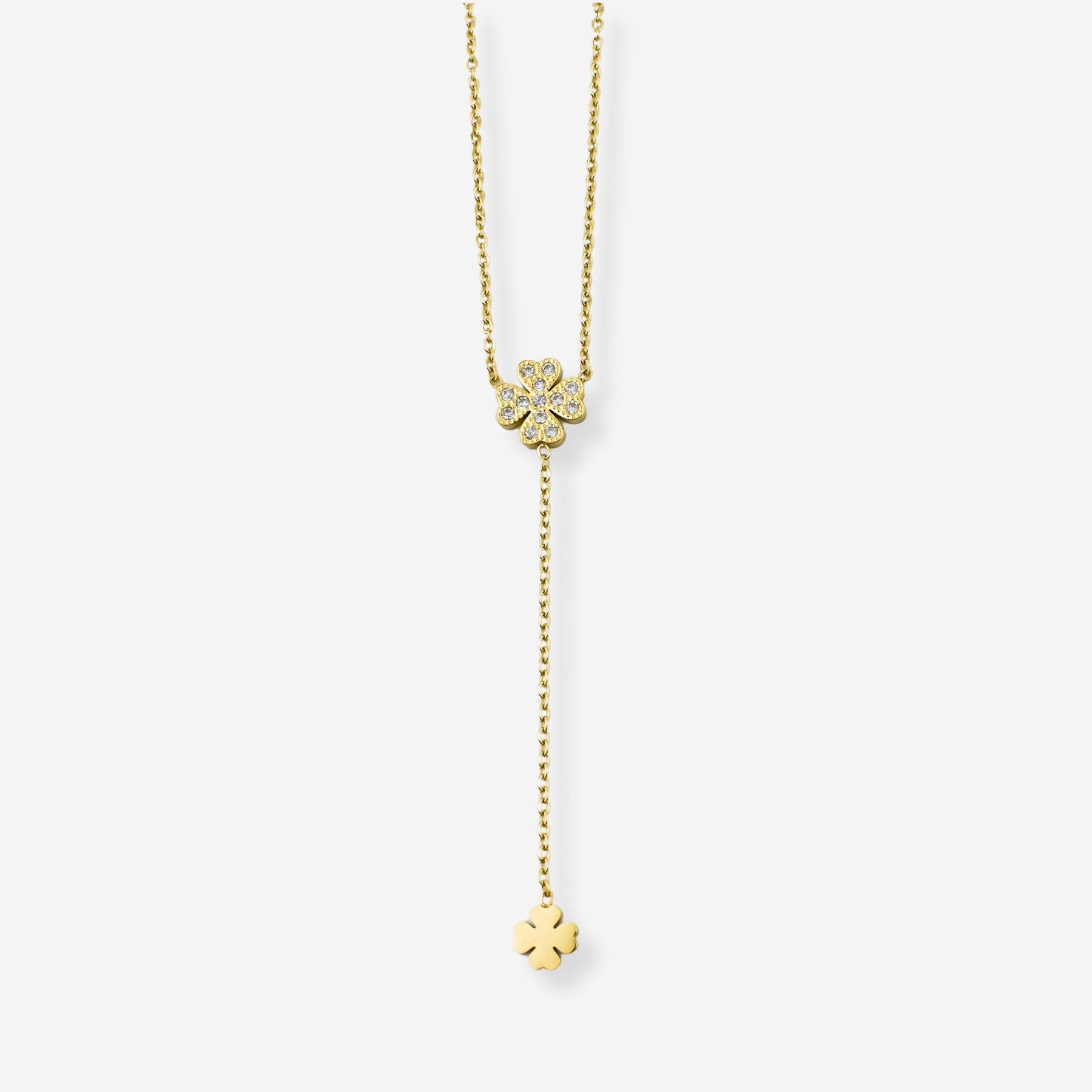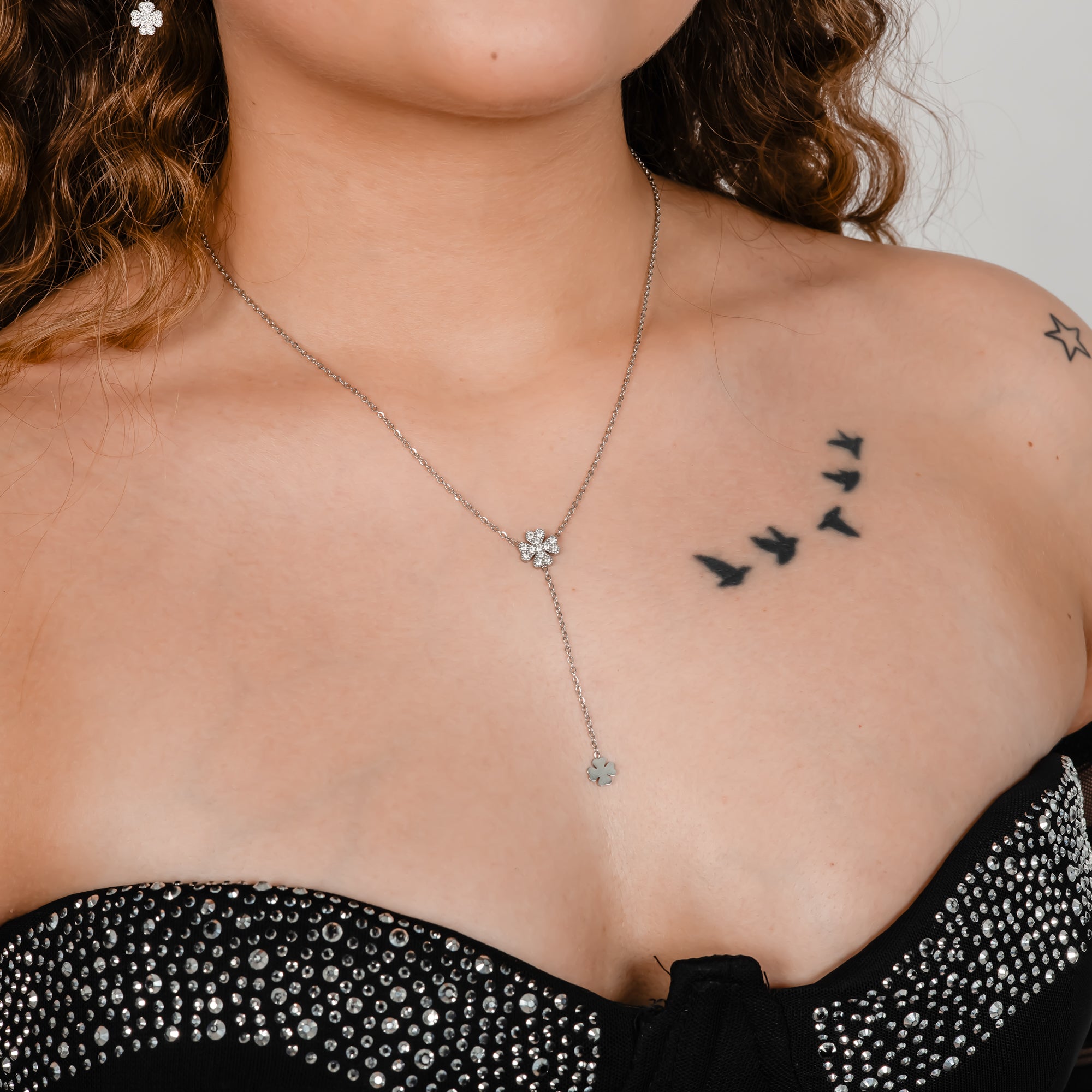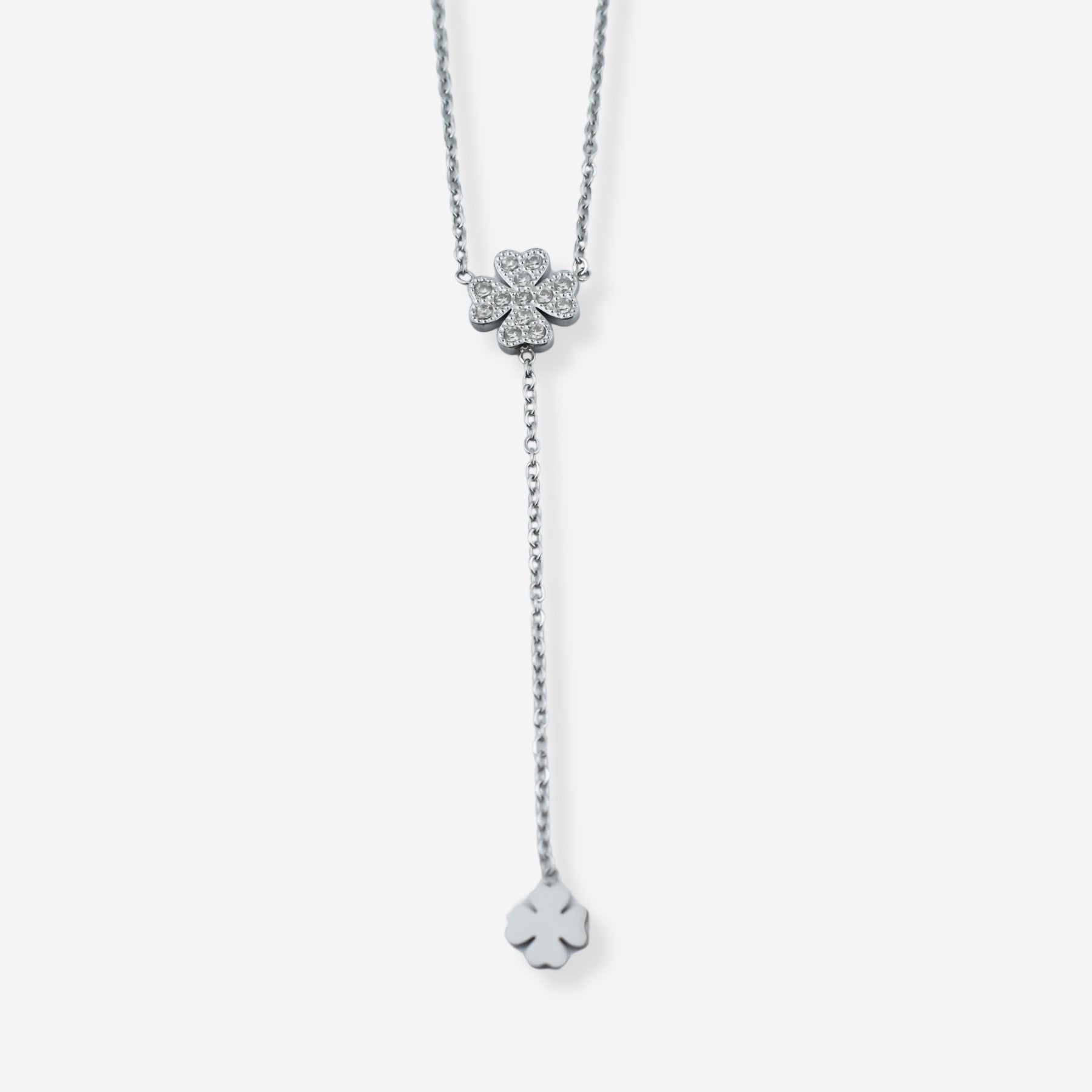 Parure Émeraude – Boucles d'oreilles, collier et bracelet en acier avec trèfles et zircones