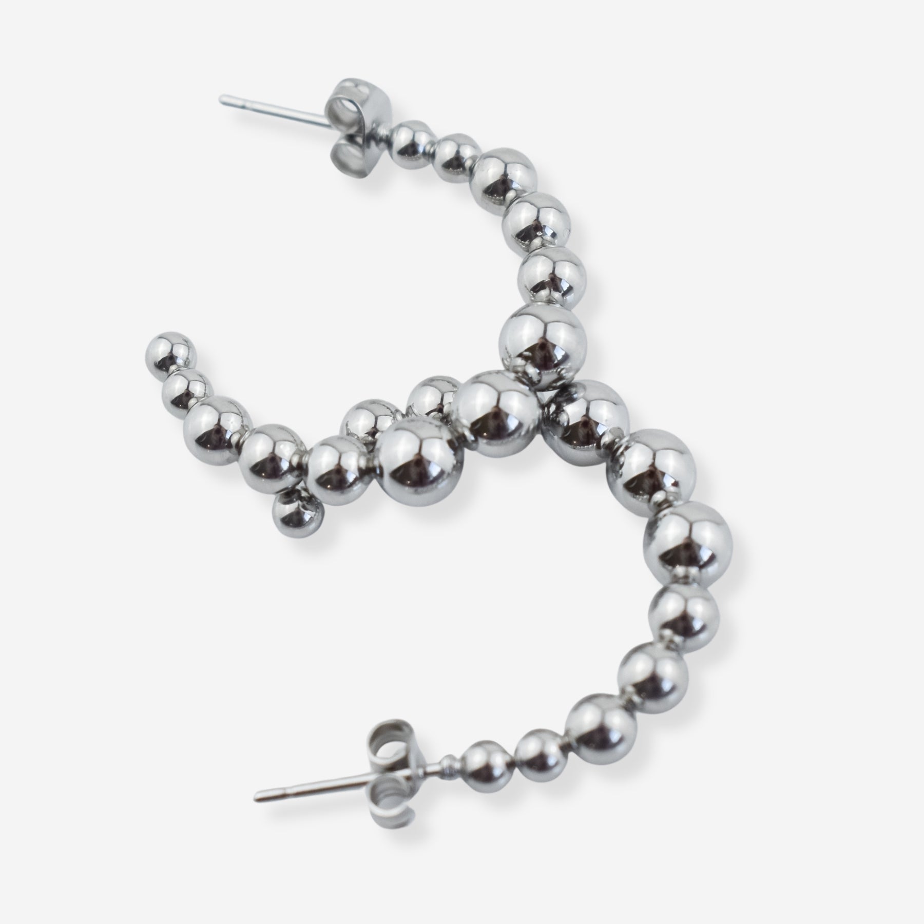 ALICE – Boucles d’Oreilles Demi Soleil en Acier avec Pierre Blanche