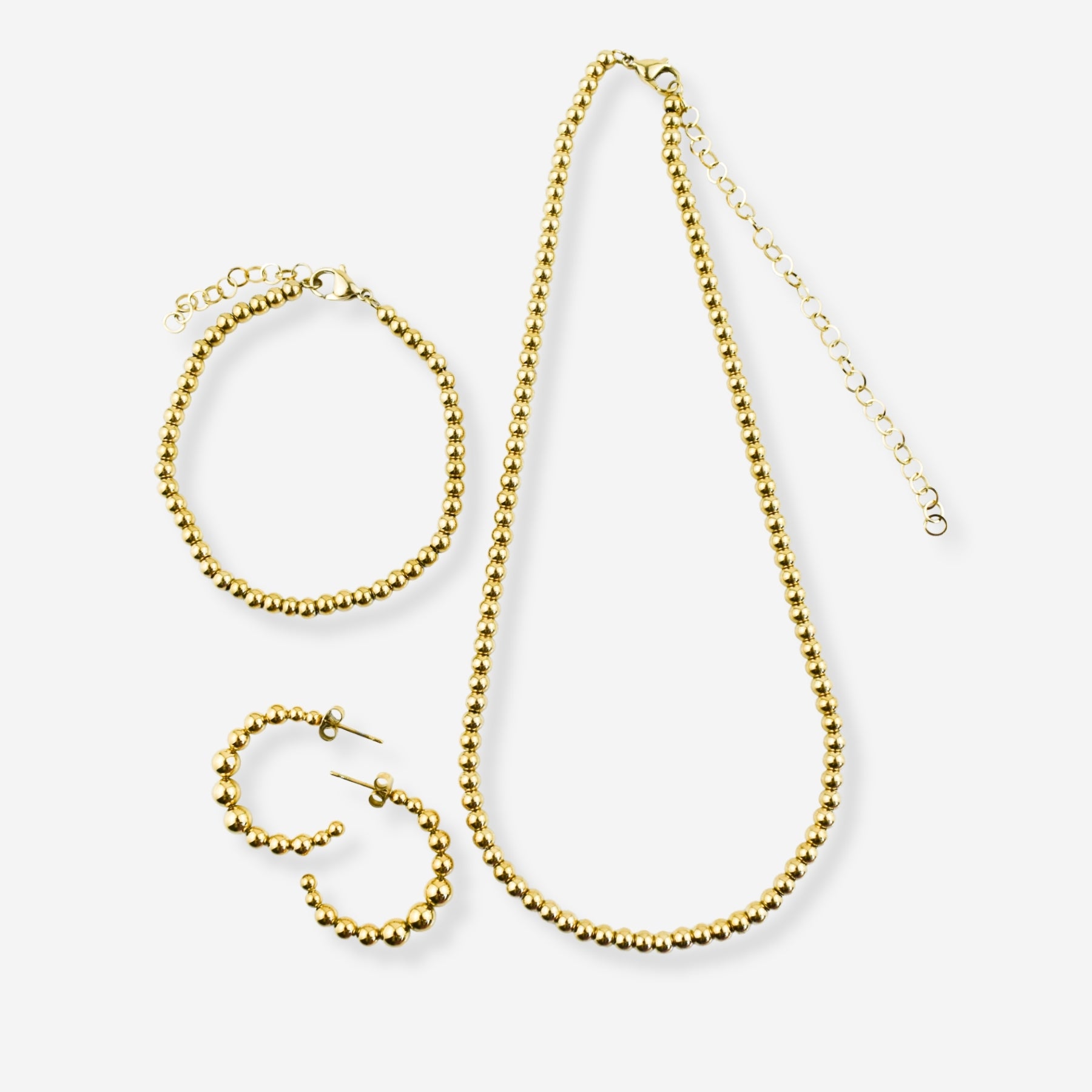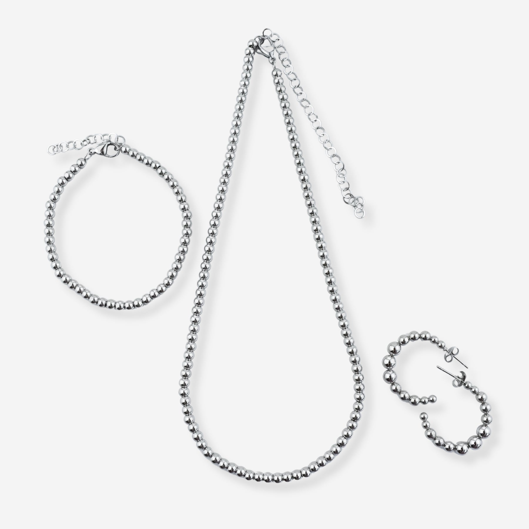 Ensemble Jade – Boucles d'oreilles, collier et bracelet en acier avec sphères