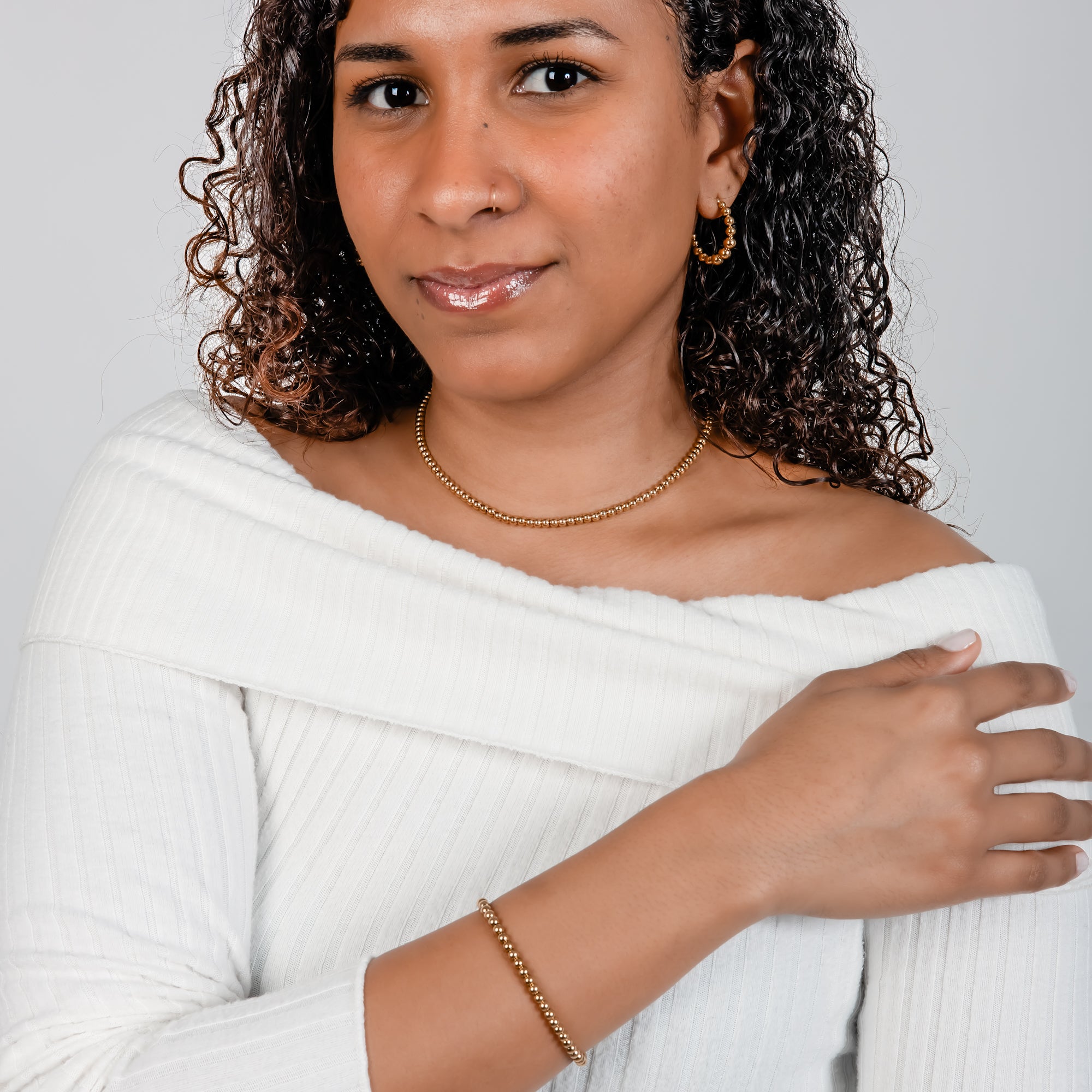 Composé de boucles d'oreilles, d'un collier et d'un bracelet en acier, cet ensemble présente des sphères délicates dans chaque pièce. Parfait pour un usage quotidien ou pour des occasions spéciales, l'ensemble Jade complète une variété de looks avec son élégance discrète. Laissez cette collection rehausser votre beauté naturelle, en transmettant une sensation de style raffiné et intemporel pour chaque occasion.