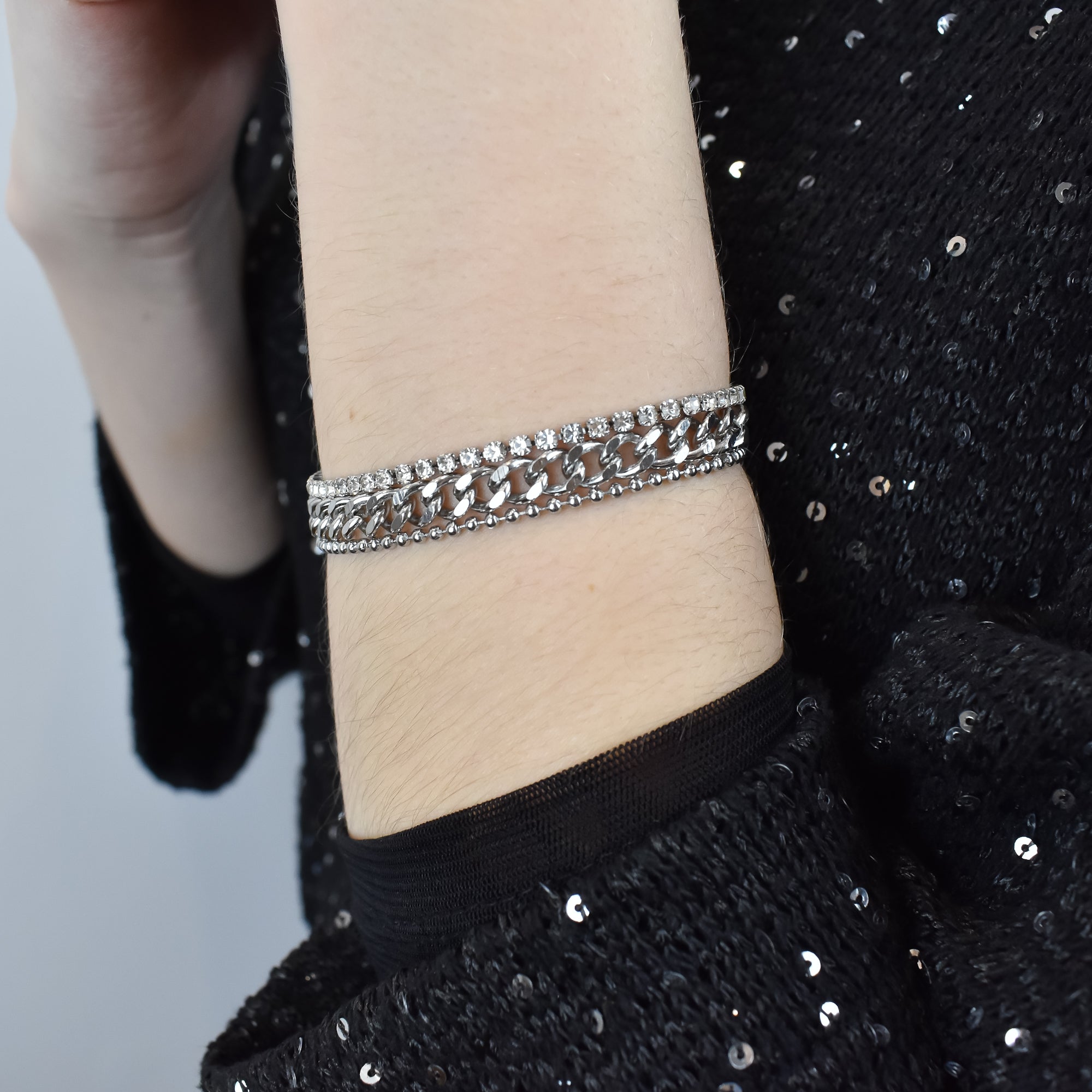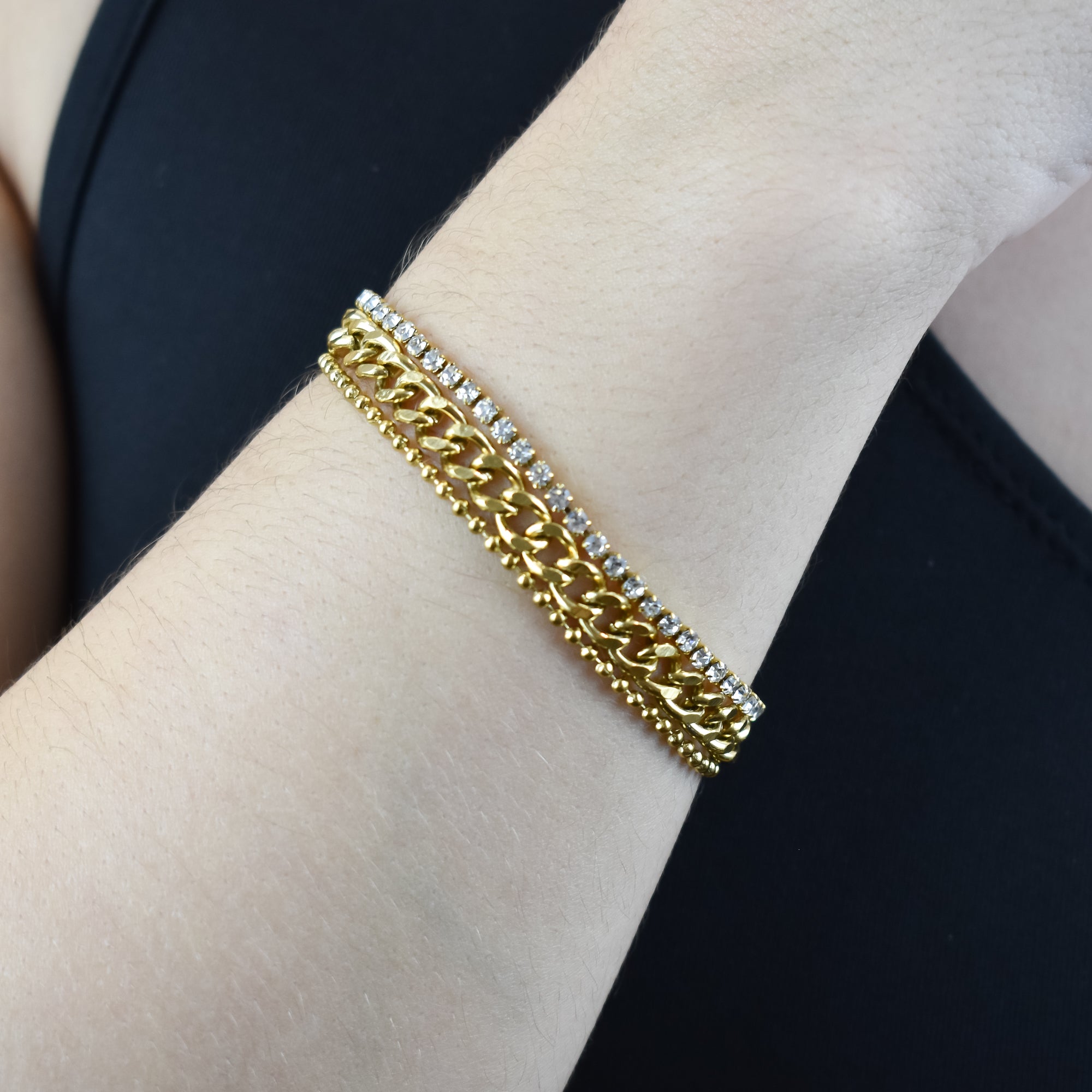 DIANA– Bracelet Triple Acier avec Strass