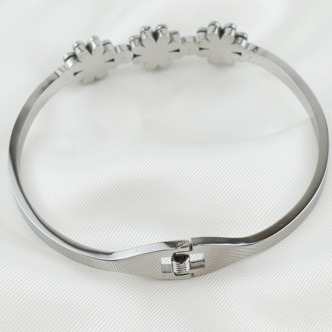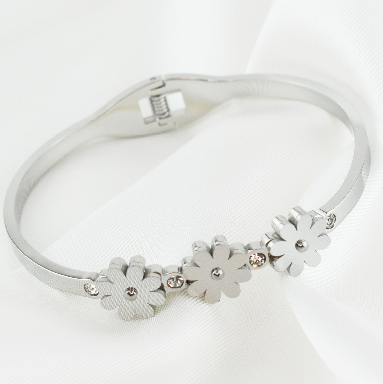 Flower – Bracelet Rigide en Acier avec Fleurs et Paillettes