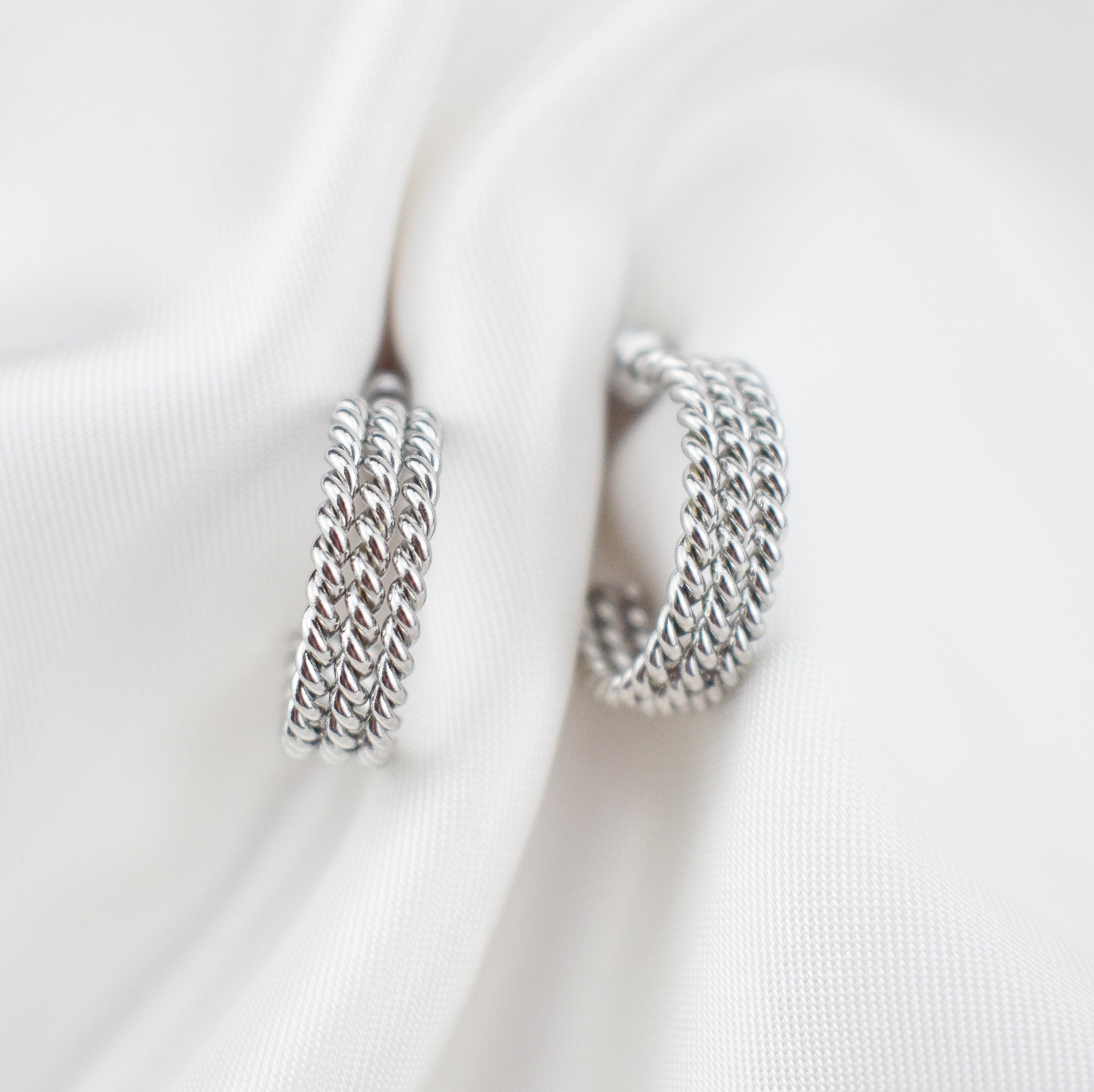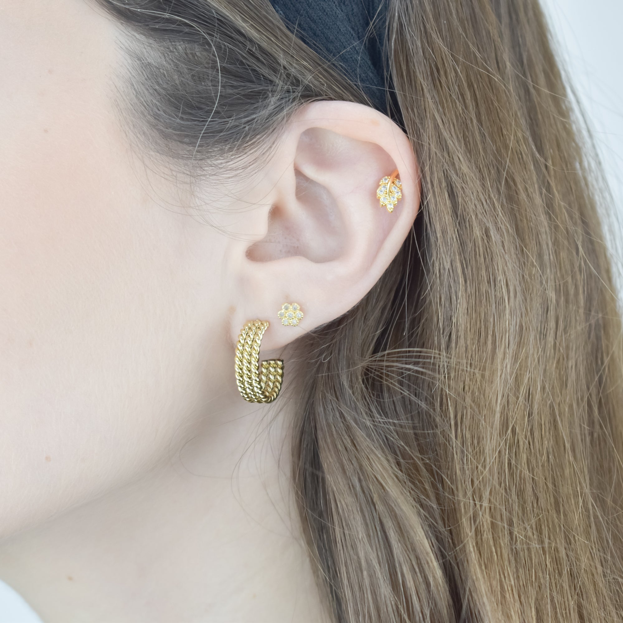 IRIS – Boucle d’oreille triple demi-créole en acier