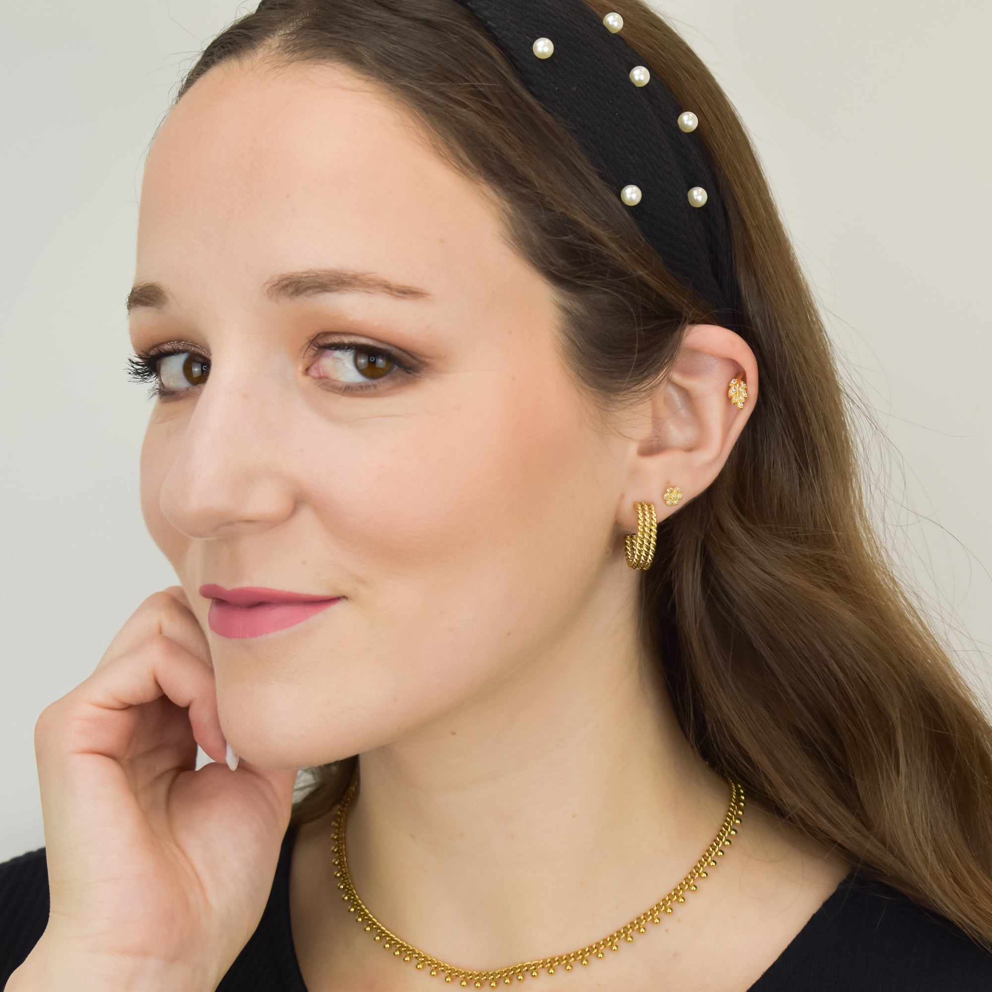 ALICE – Boucles d’Oreilles Demi Soleil en Acier avec Pierre Blanche