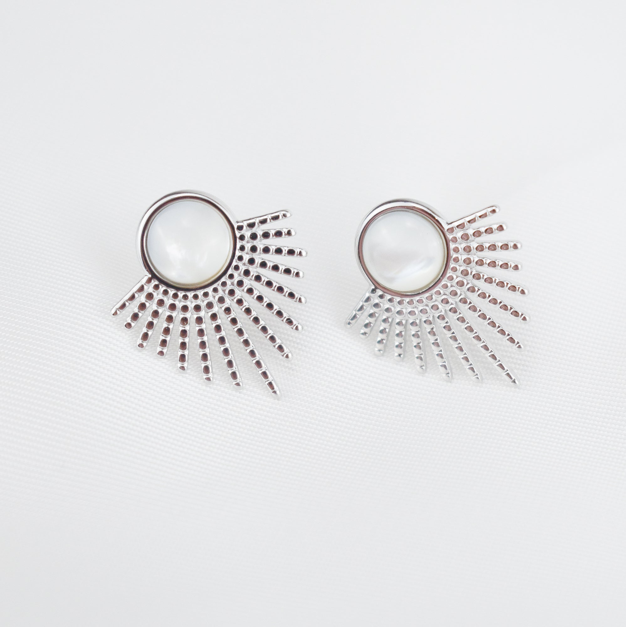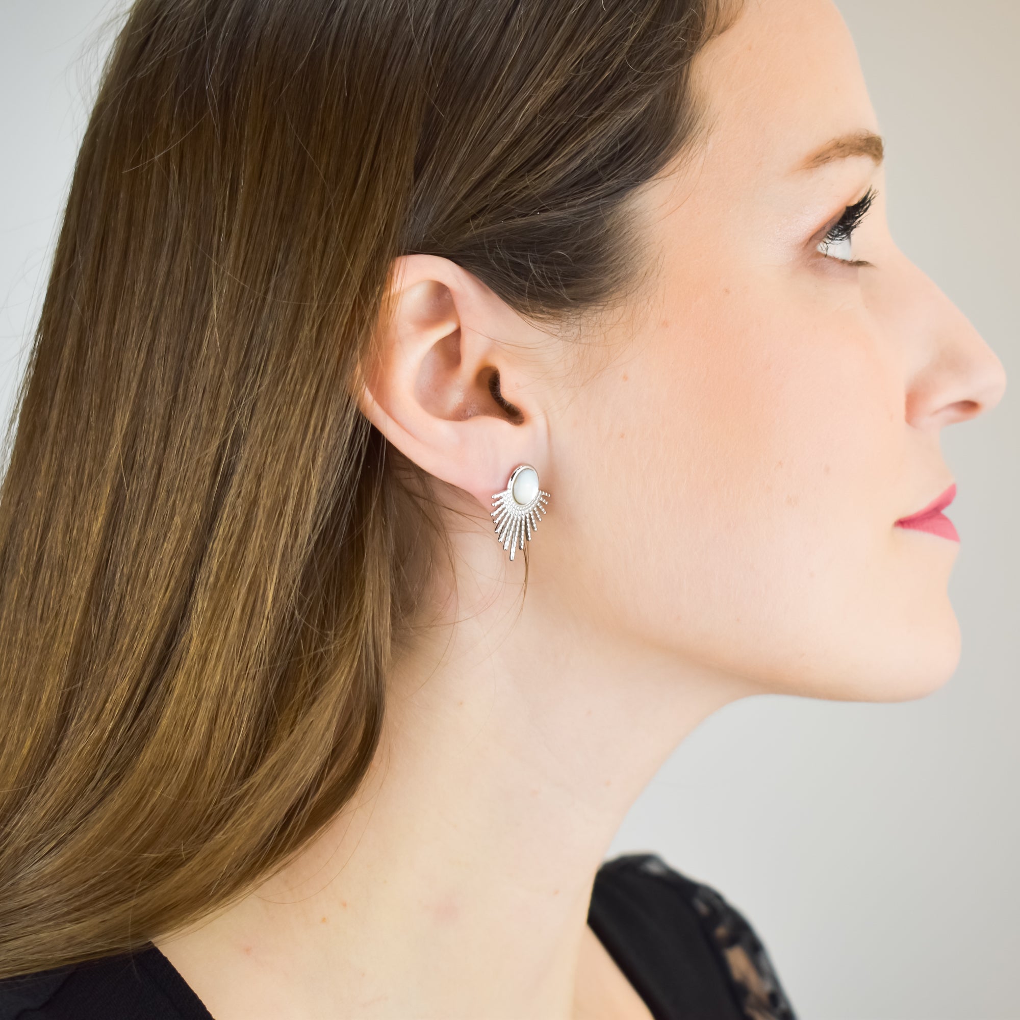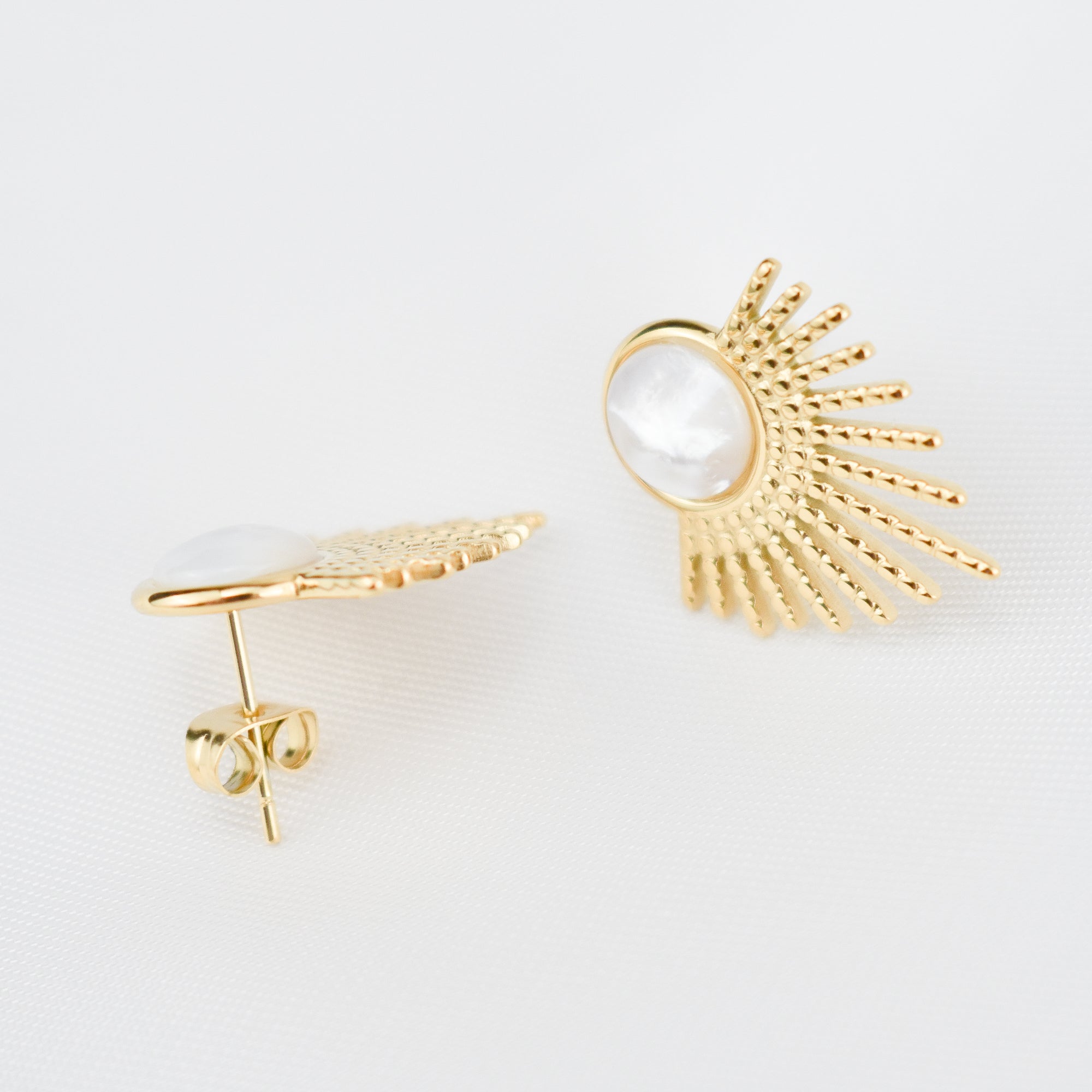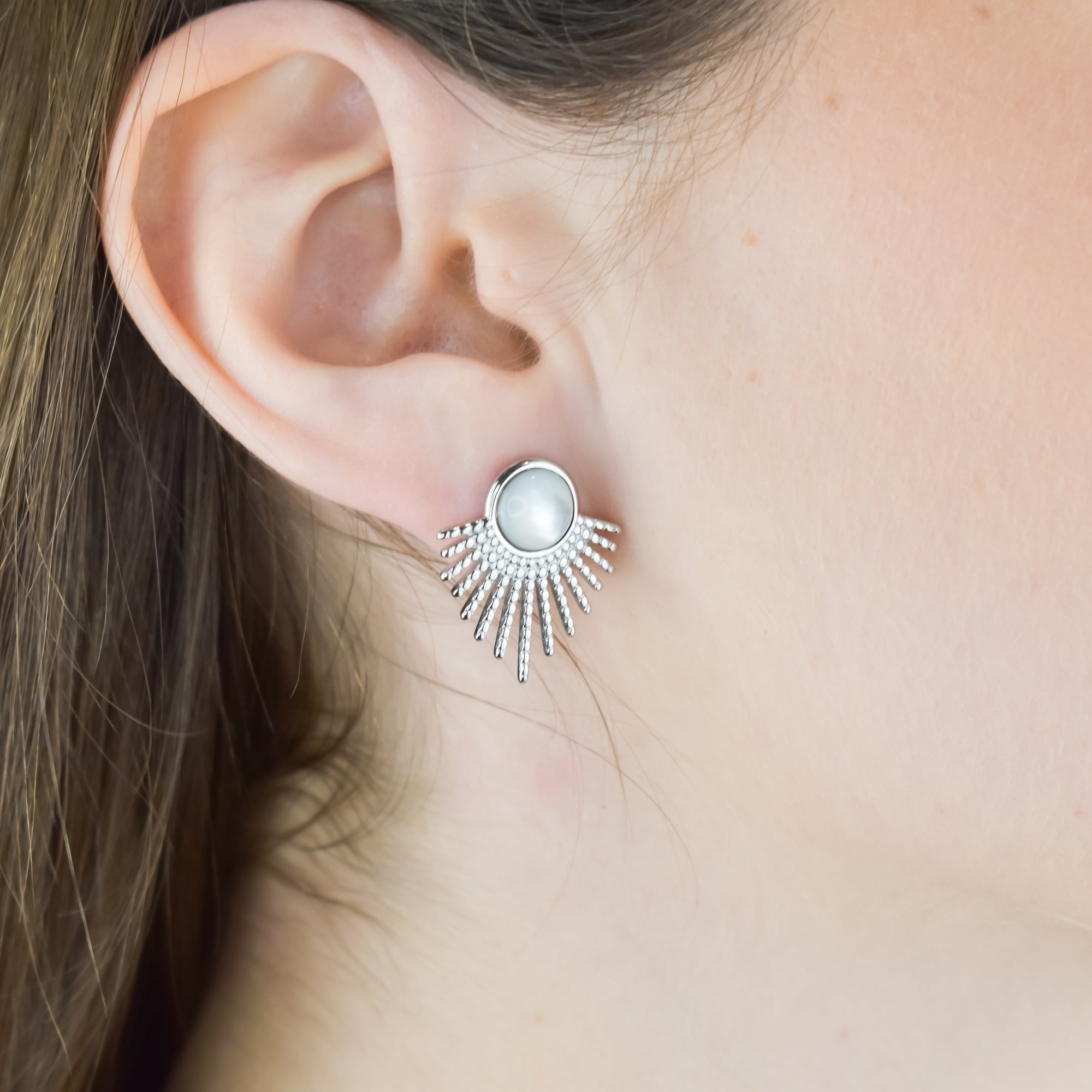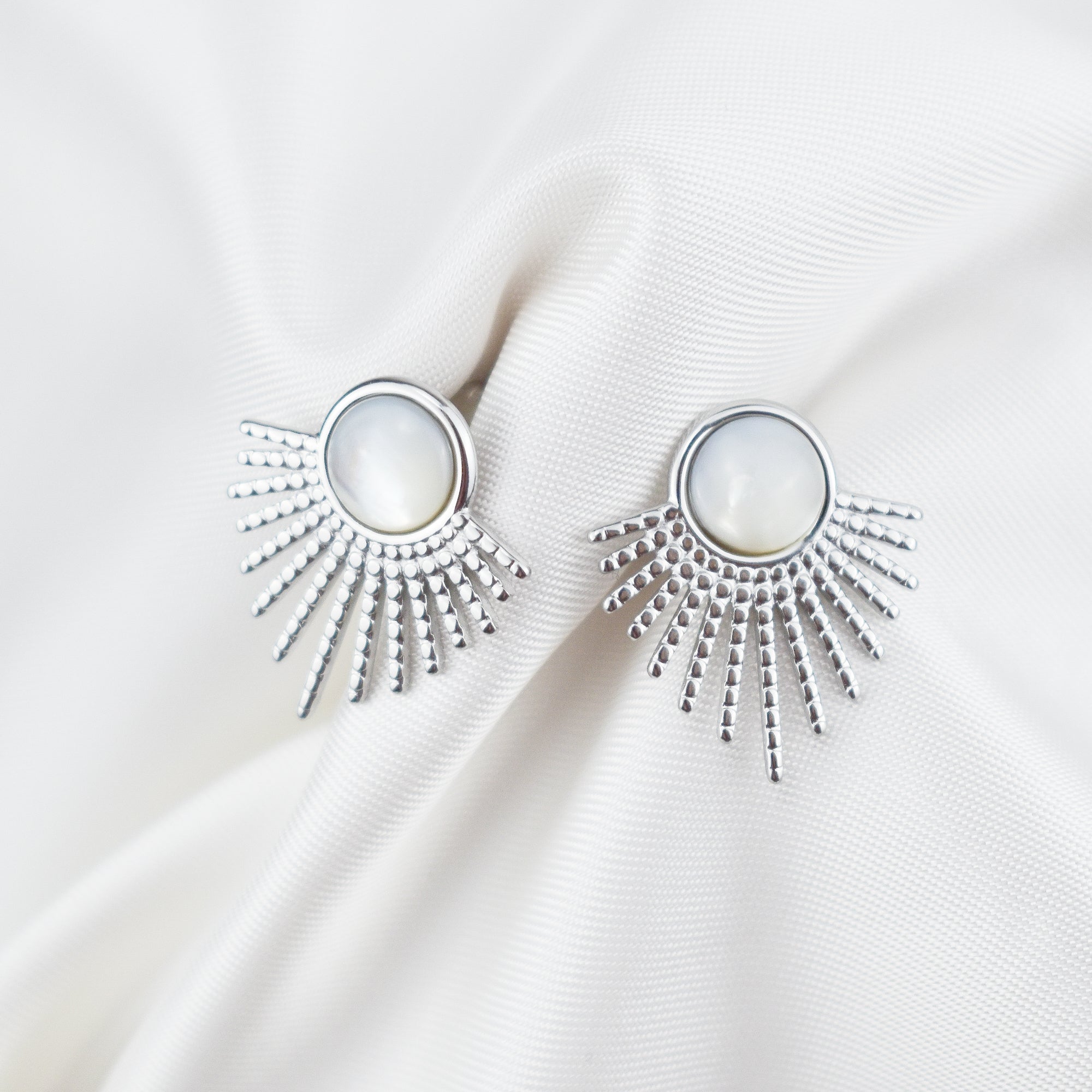 ALICE – Boucles d’Oreilles Demi Soleil en Acier avec Pierre Blanche
