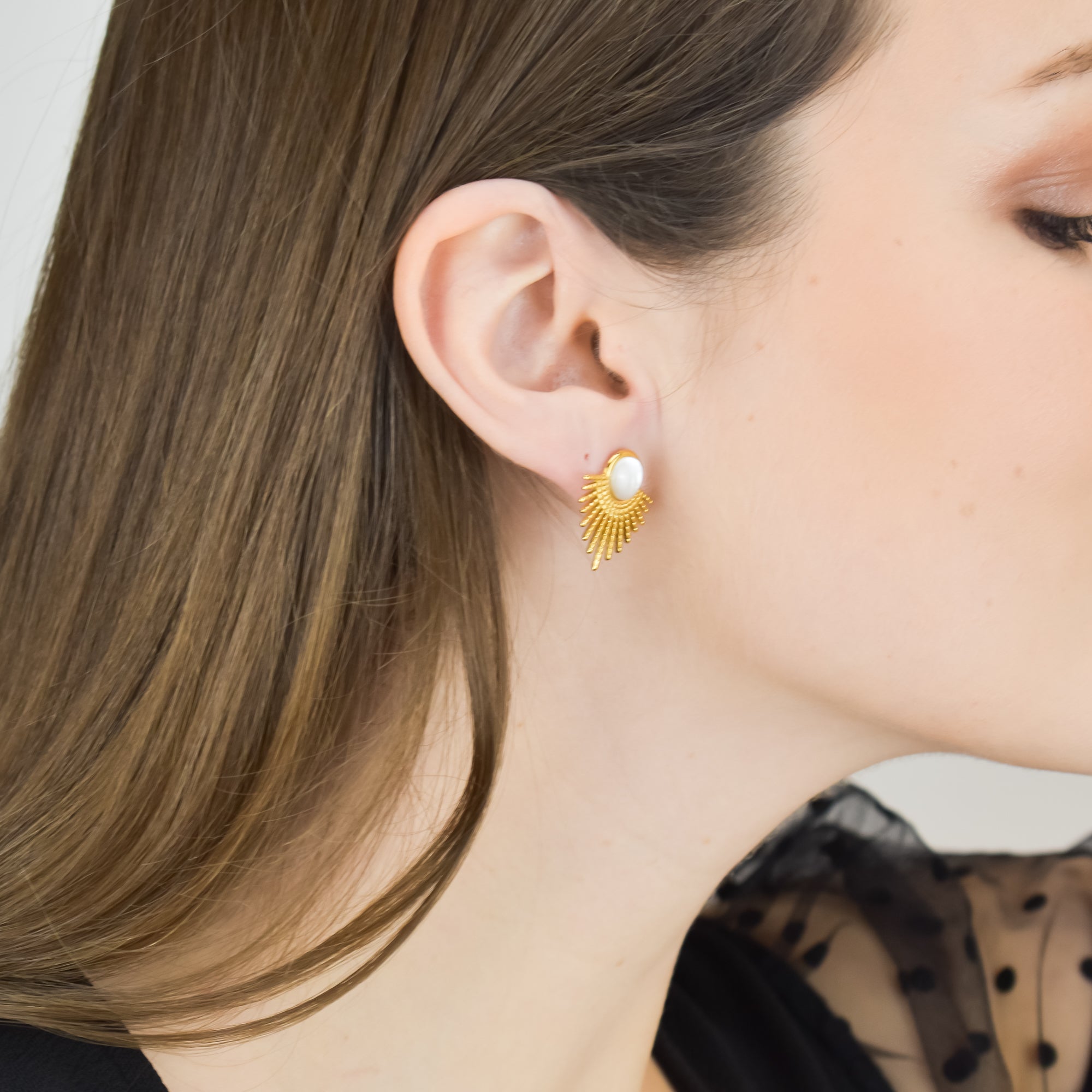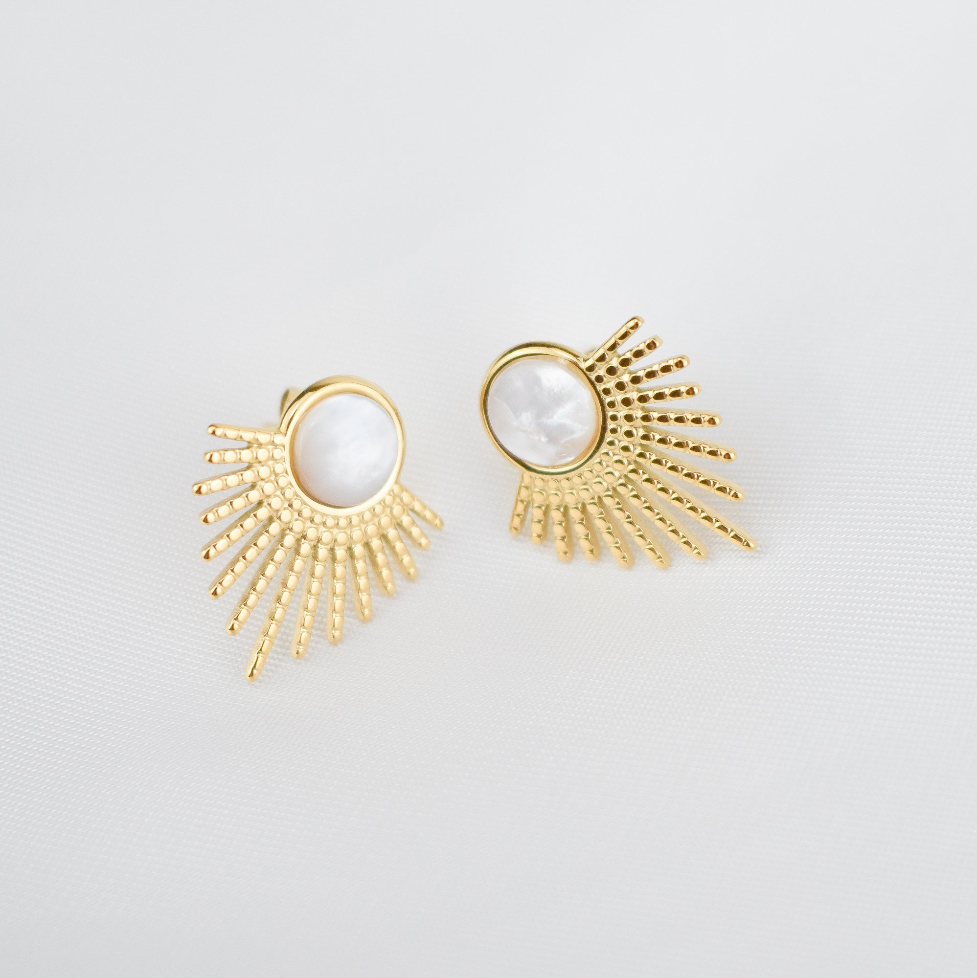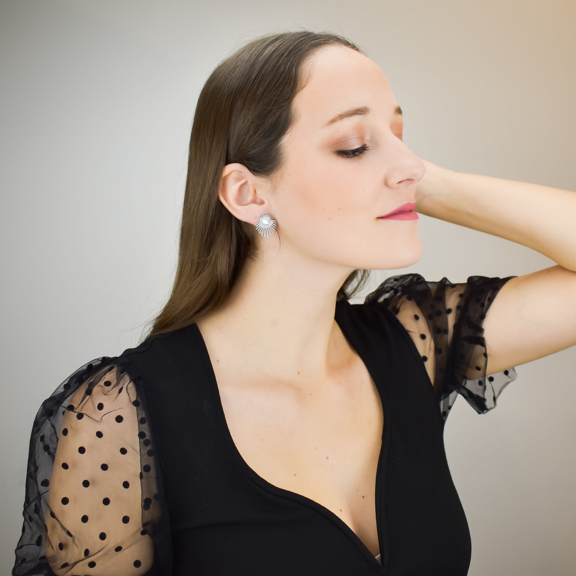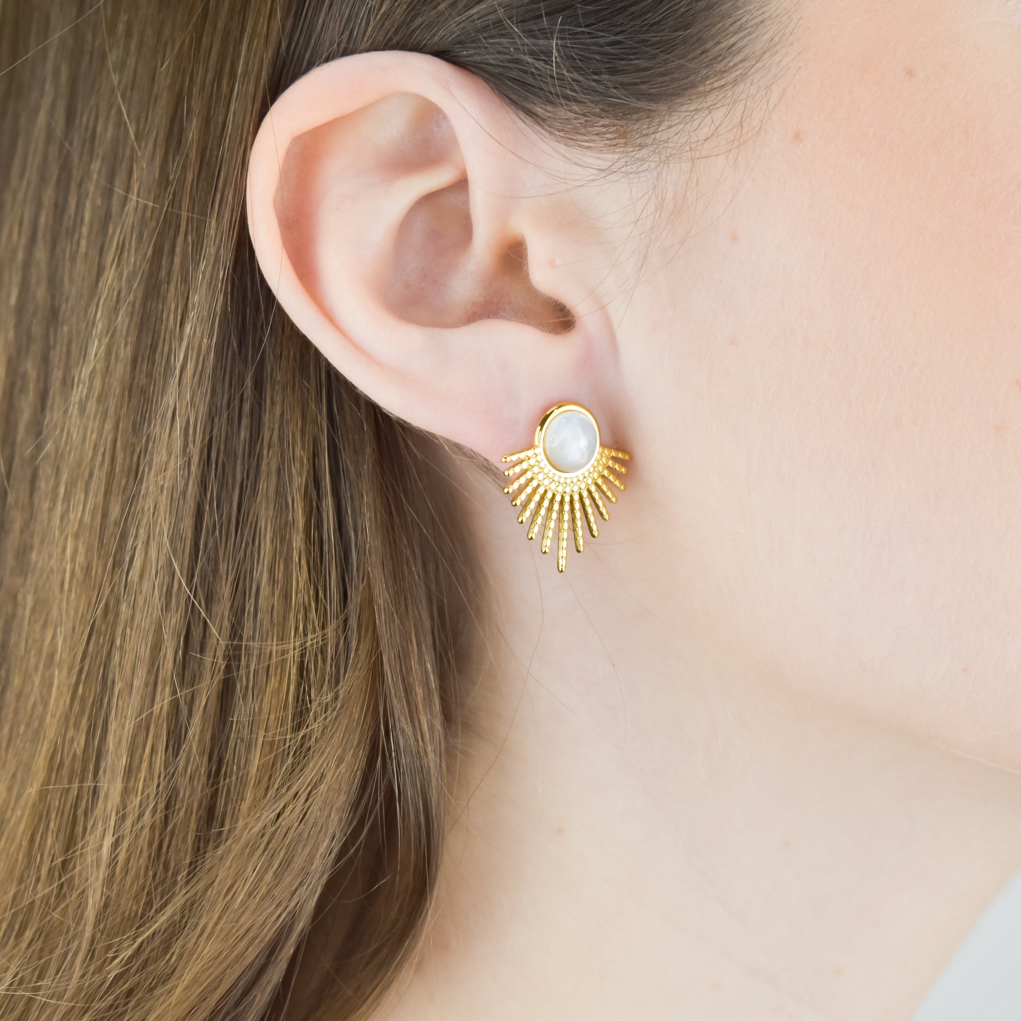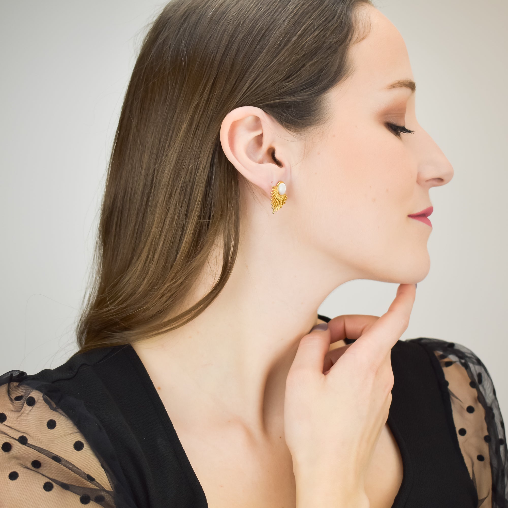 ALICE – Boucles d’Oreilles Demi Soleil en Acier avec Pierre Blanche