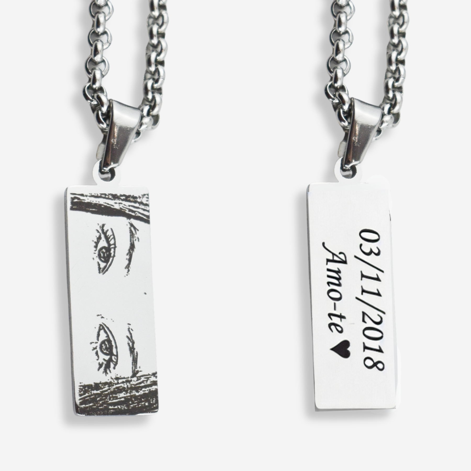 Vos Yeux - Collier personnalisable en acier inoxydable avec médaille verticale