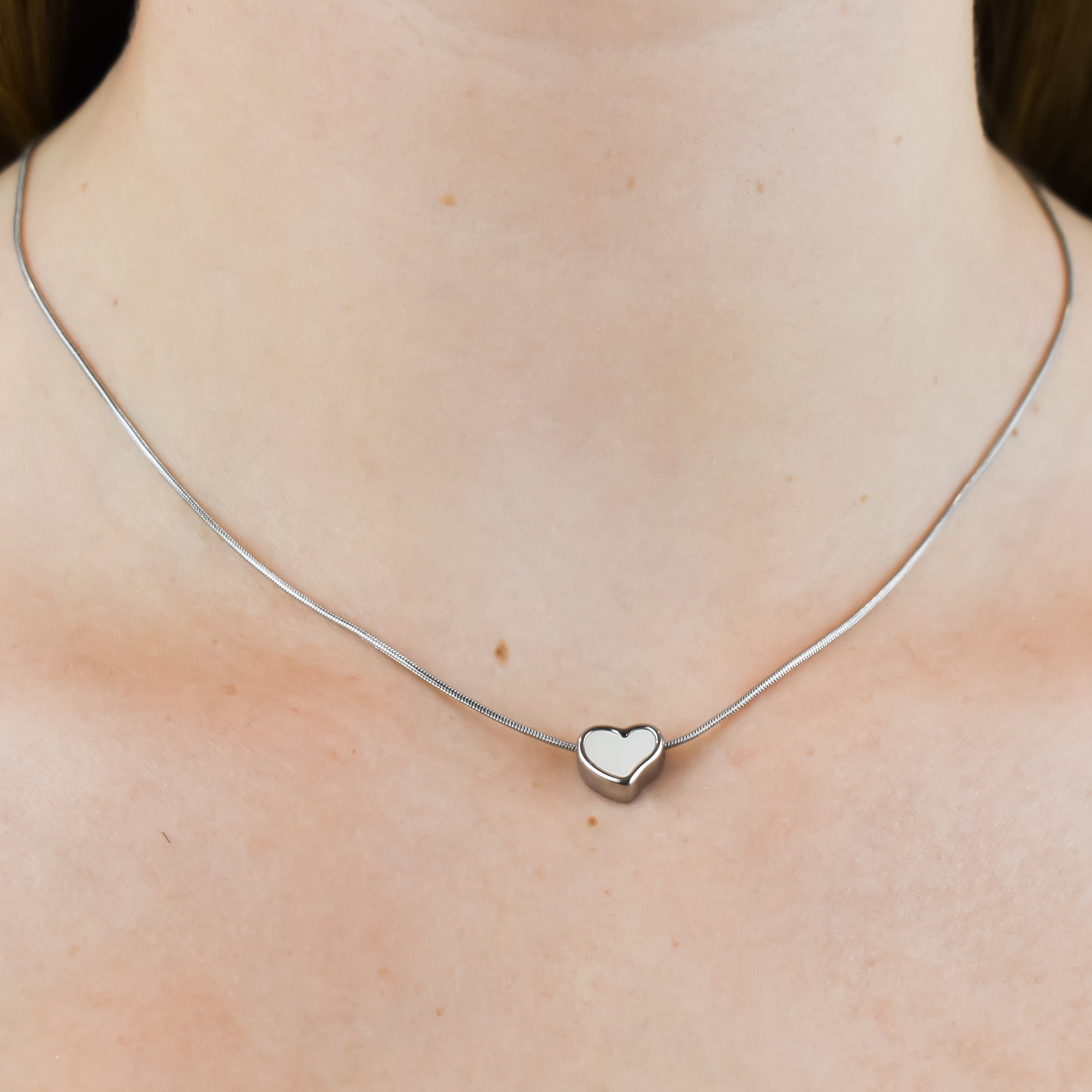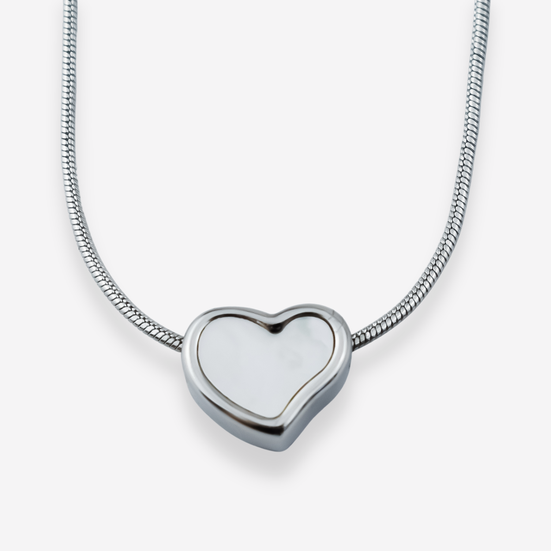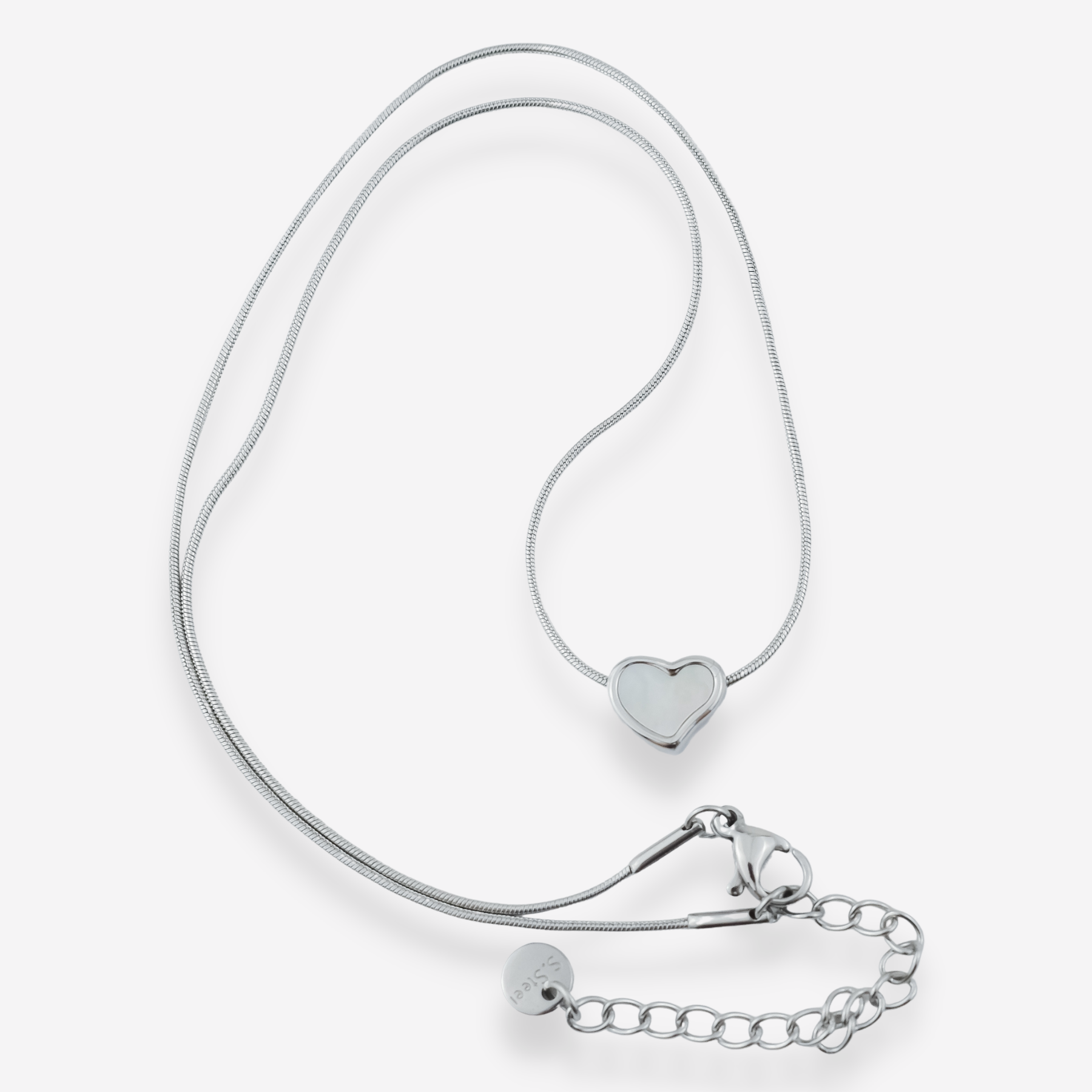VALENTINA – Collier en Acier avec Coeur en Nacre