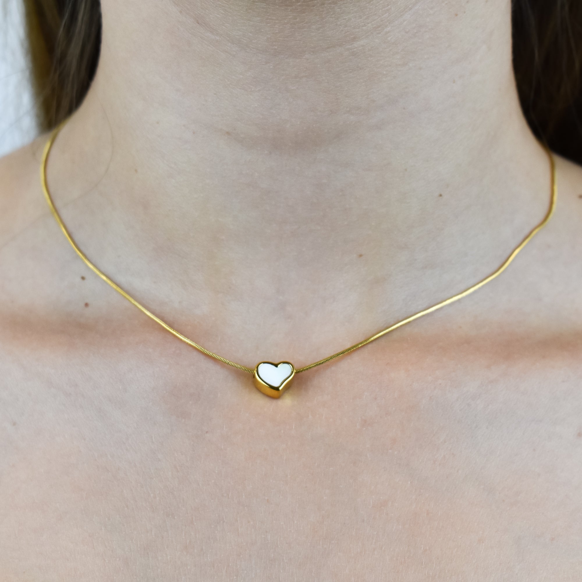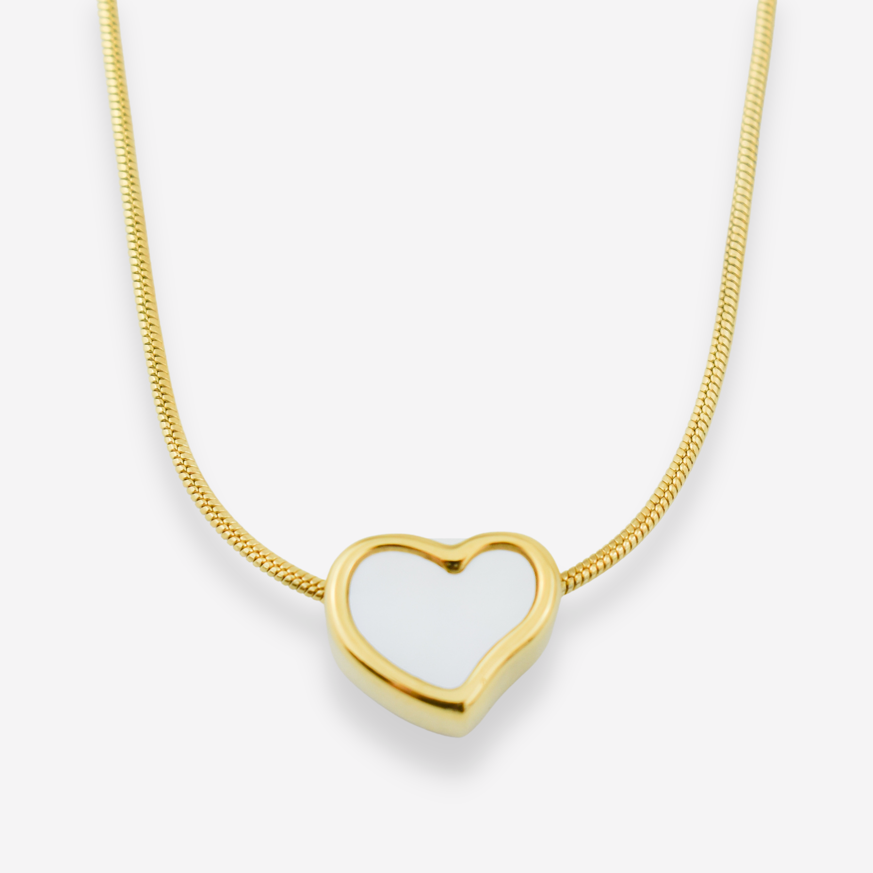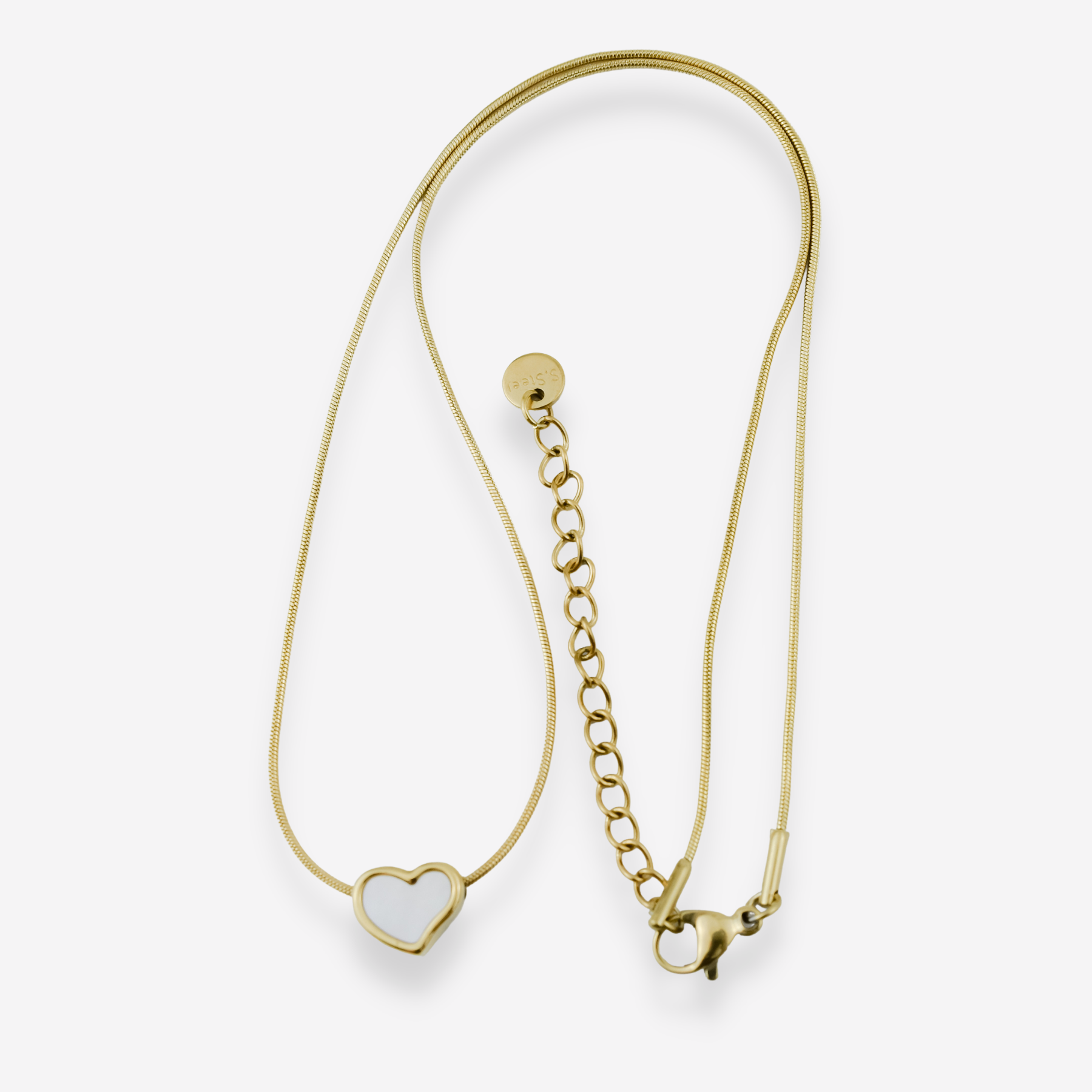 VALENTINA – Collier en Acier avec Coeur en Nacre