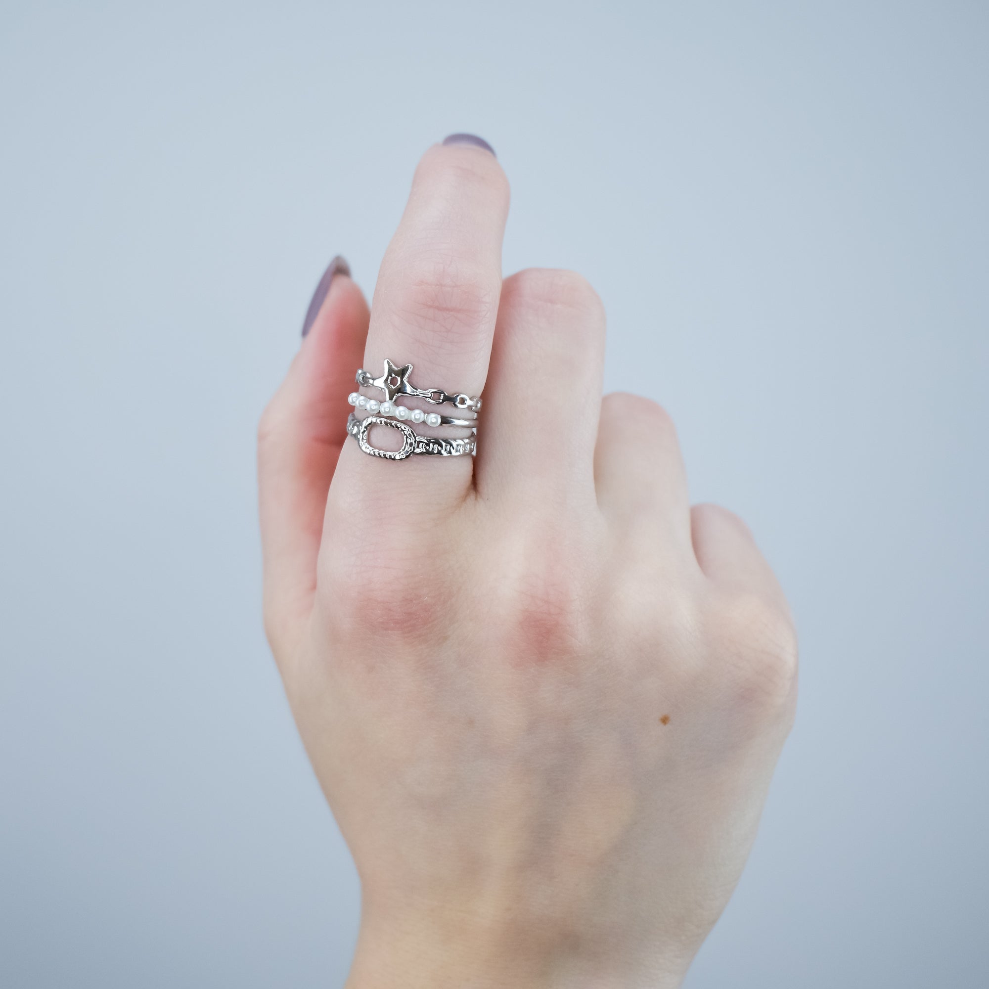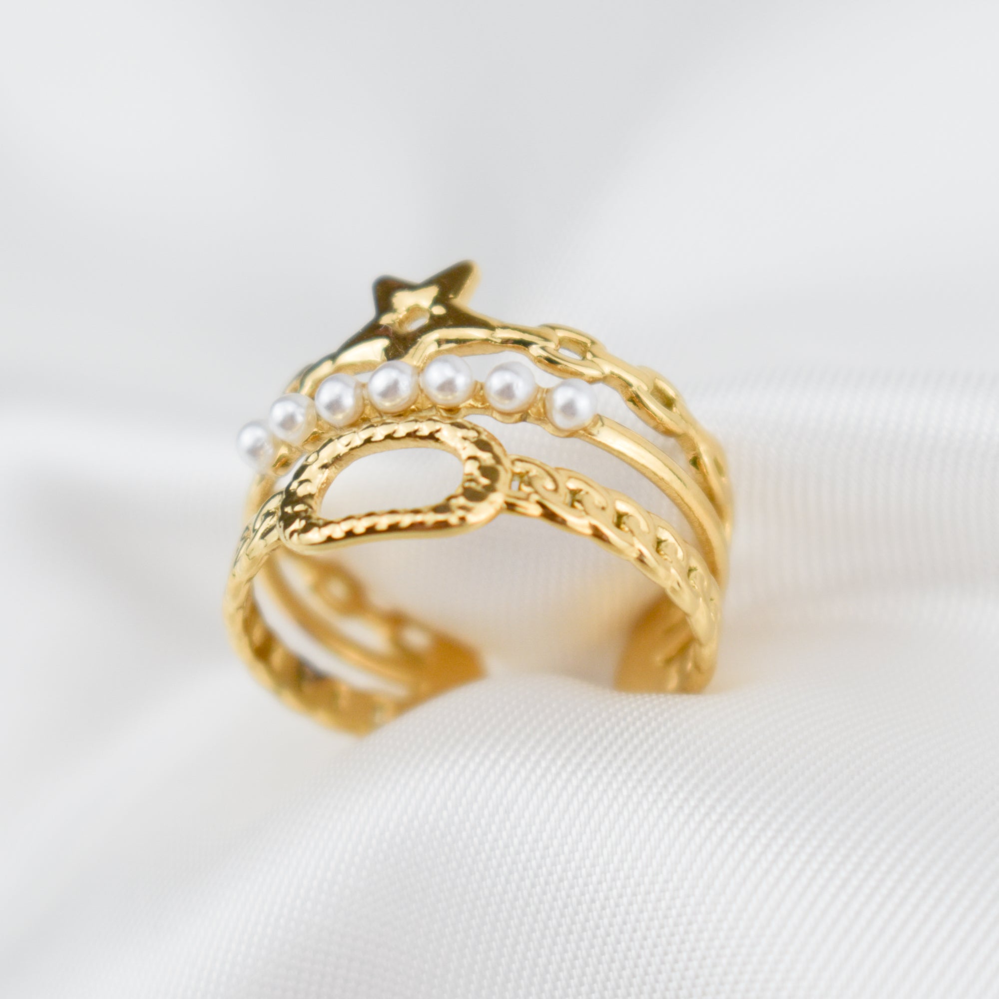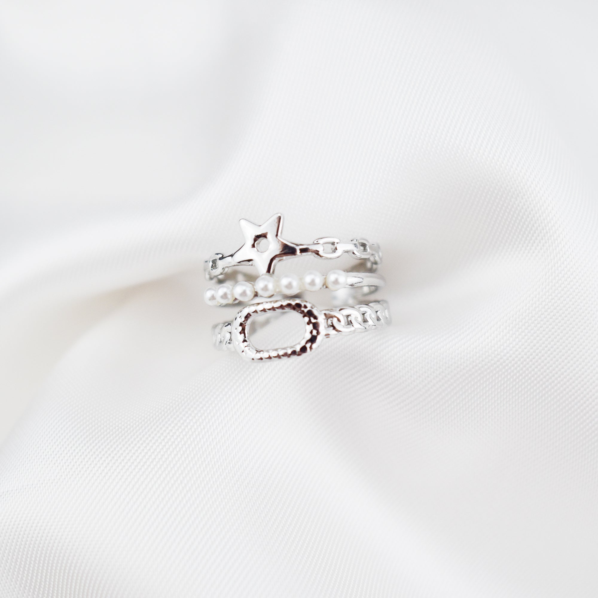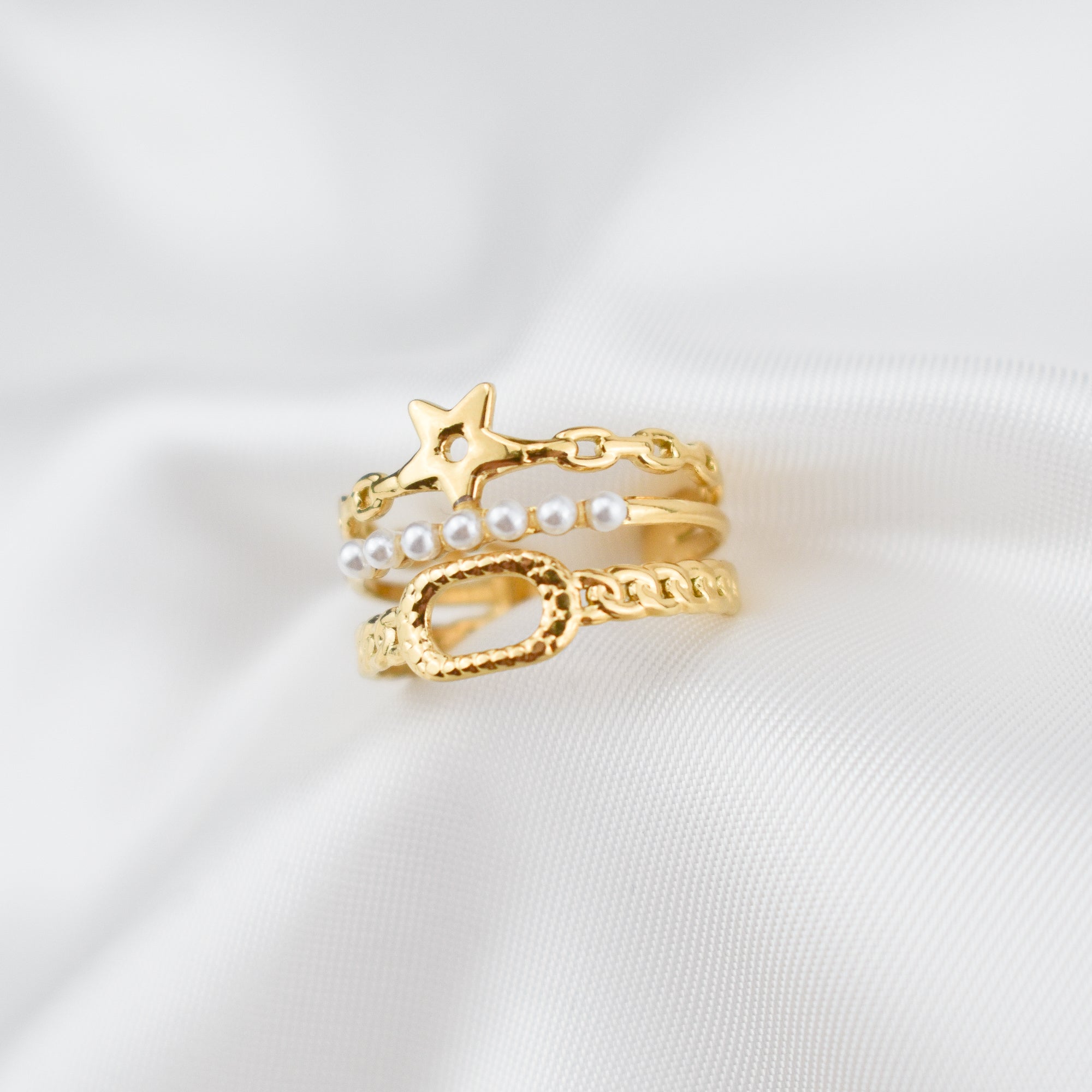 ALYSSA - Anel Triplo em Aço com Estrela e Pérolas