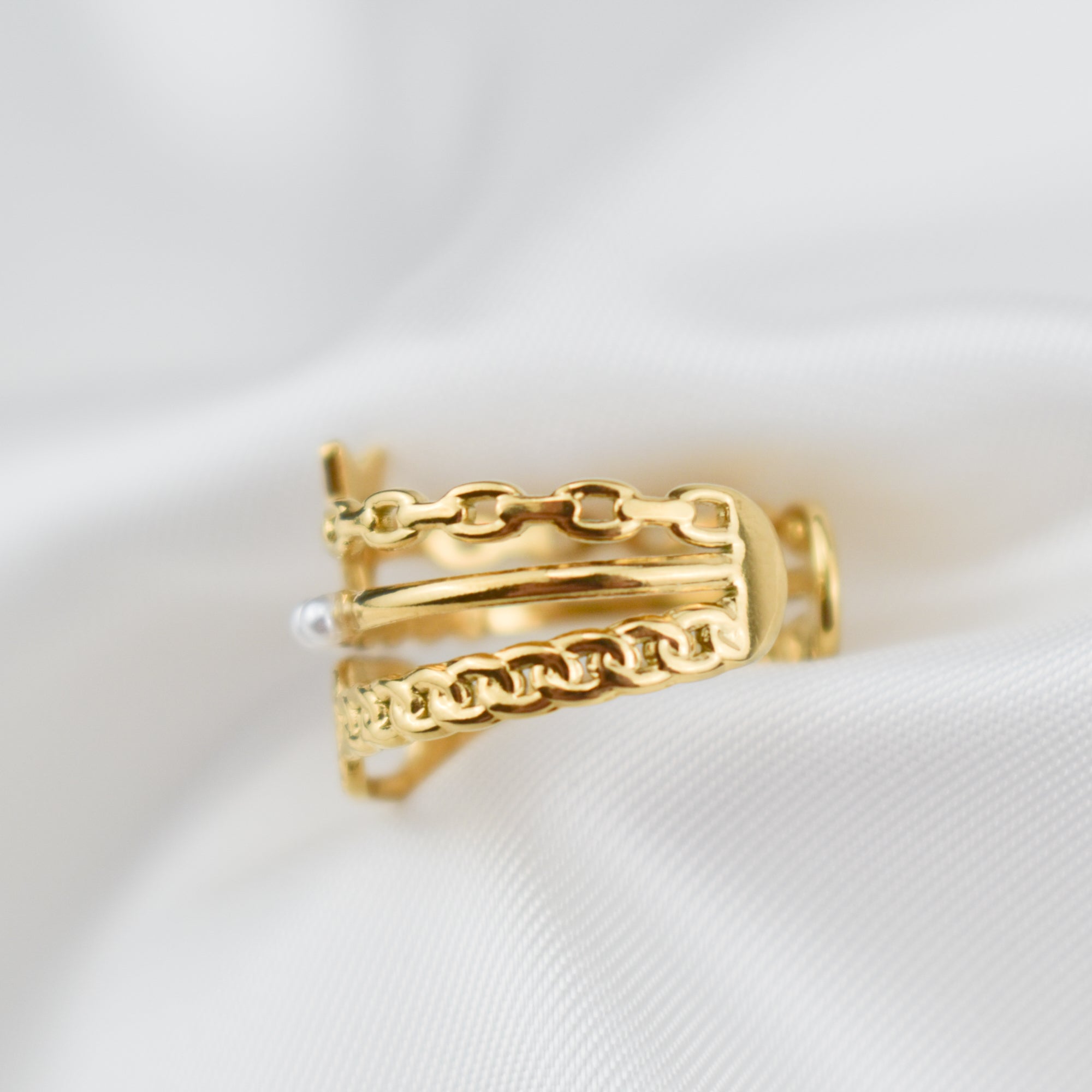 AMANDA – Ear Cuff Individual com Corrente e Brinco com Brilhante