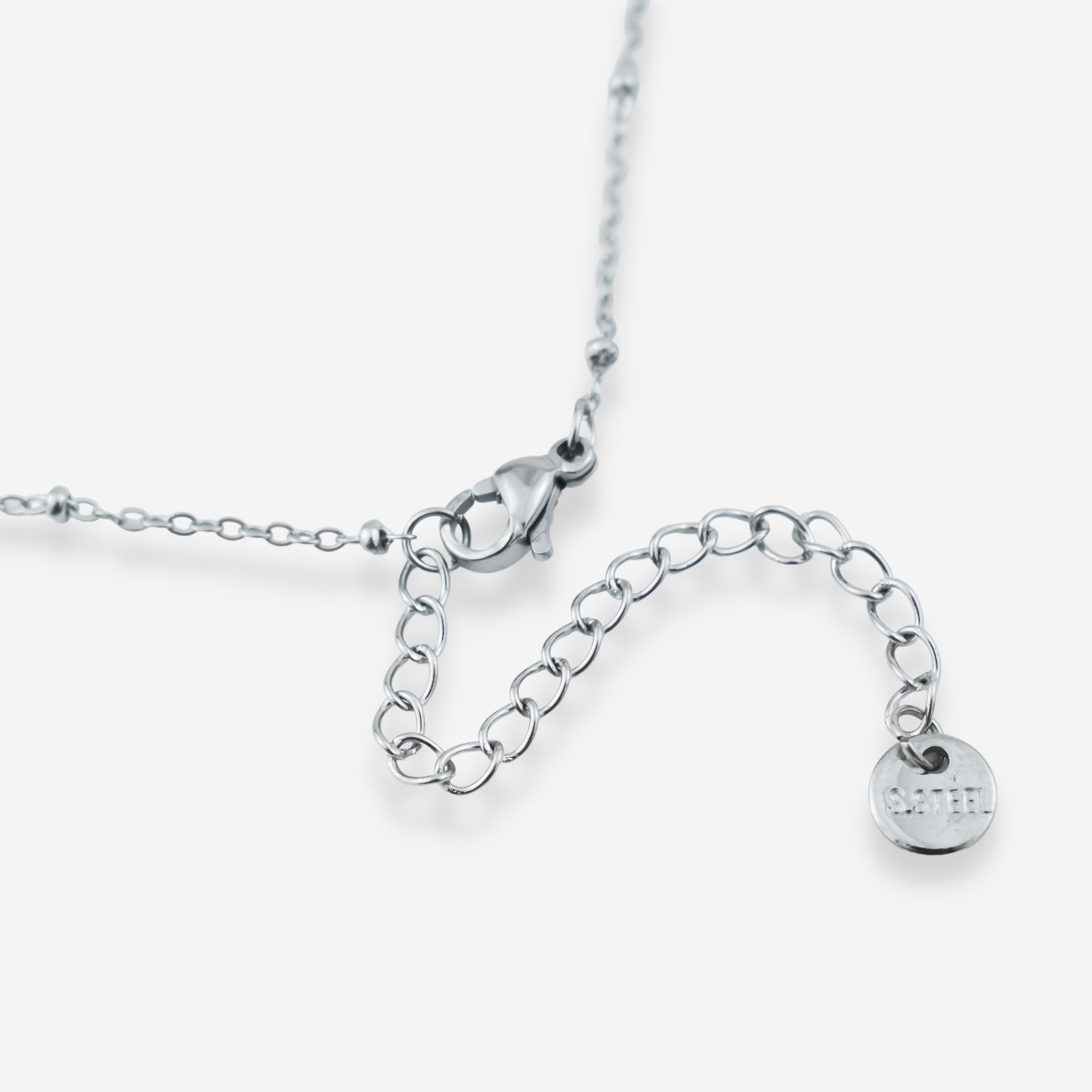 Desperte a sua beleza com o Colar Aurora. Este colar fino em aço inoxidável é adornado com delicadas bolinhas que conduzem a uma medalha de madrepérola com um deslumbrante rosa e um brilhante cintilante. Este colar é uma verdadeira obra de arte que irradia elegância e delicadeza. Use o Colar Aurora para acrescentar um toque de charme e sofisticação ao seu visual e deixe a sua beleza brilhar.
