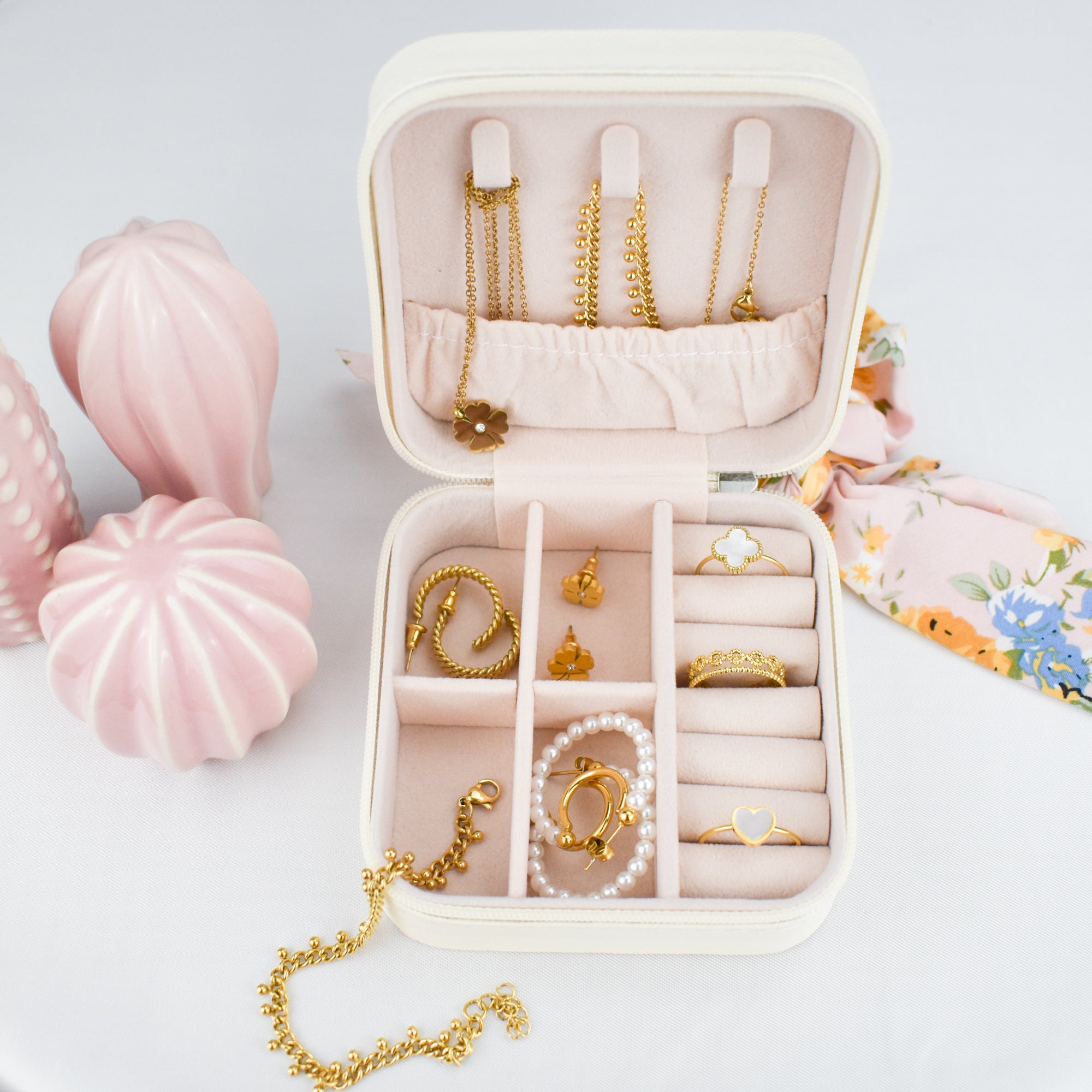 O guarda-joias Beauty é leve, pequeno e muito útil. Perfeito para levar em viagens ou organizar as suas joias de dia a dia.
