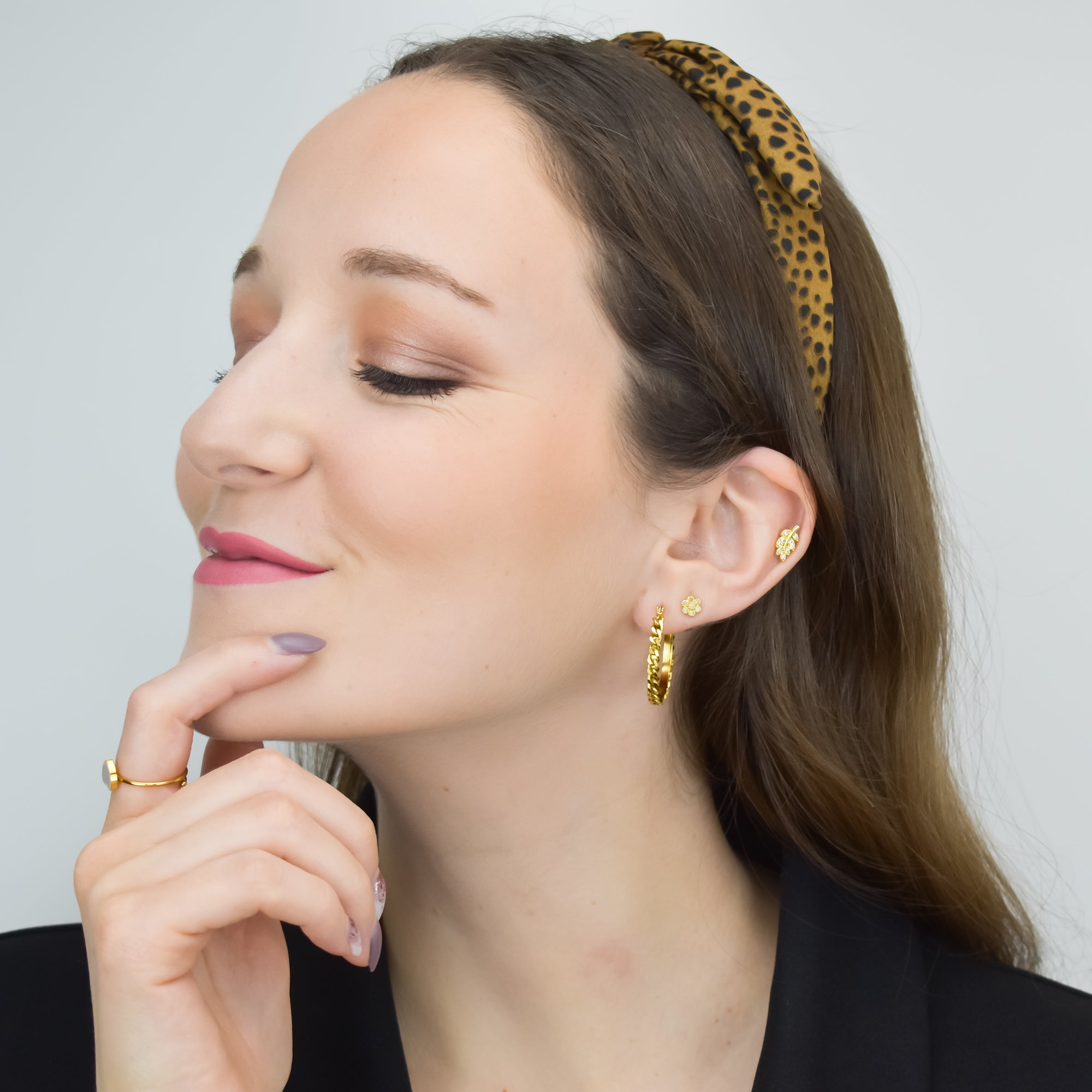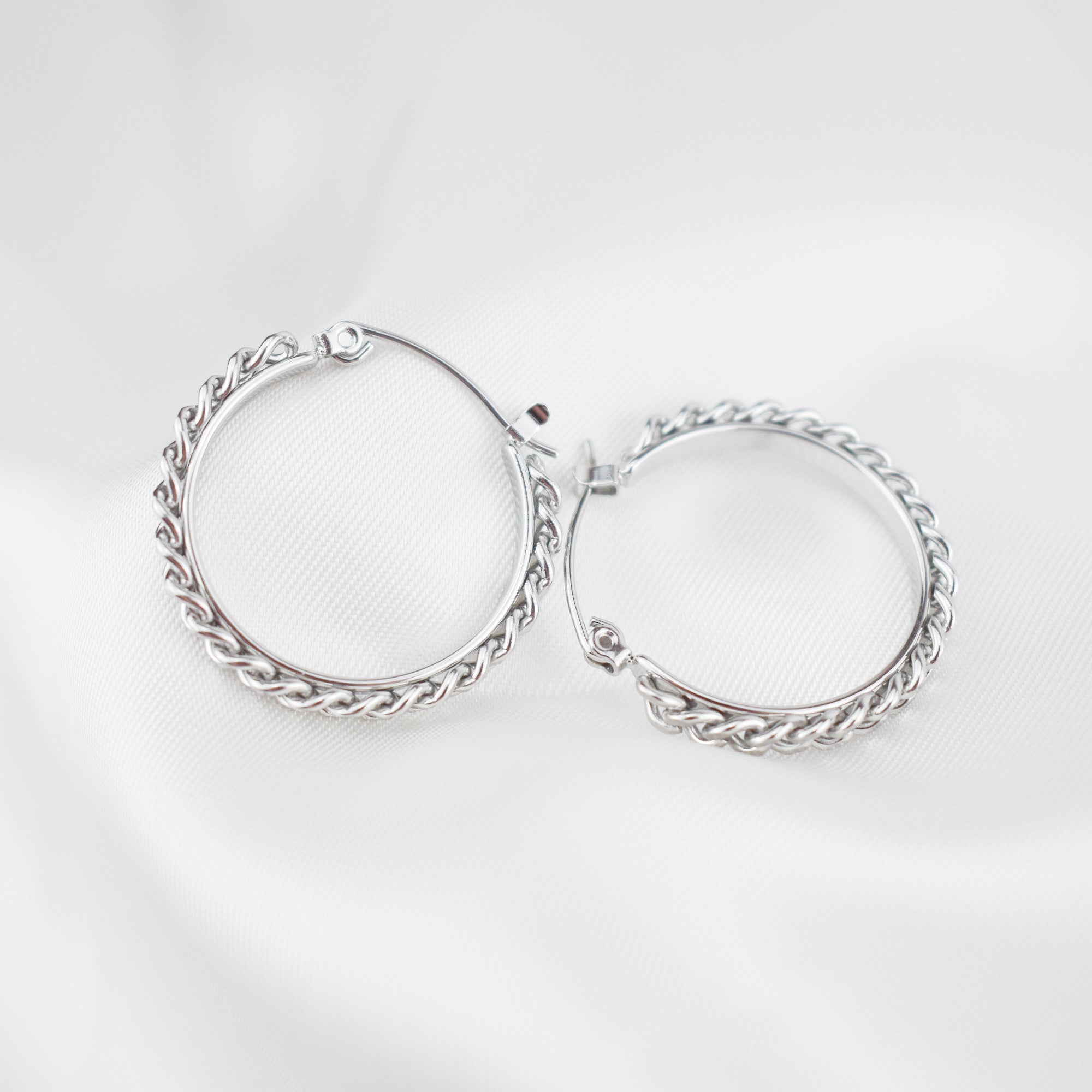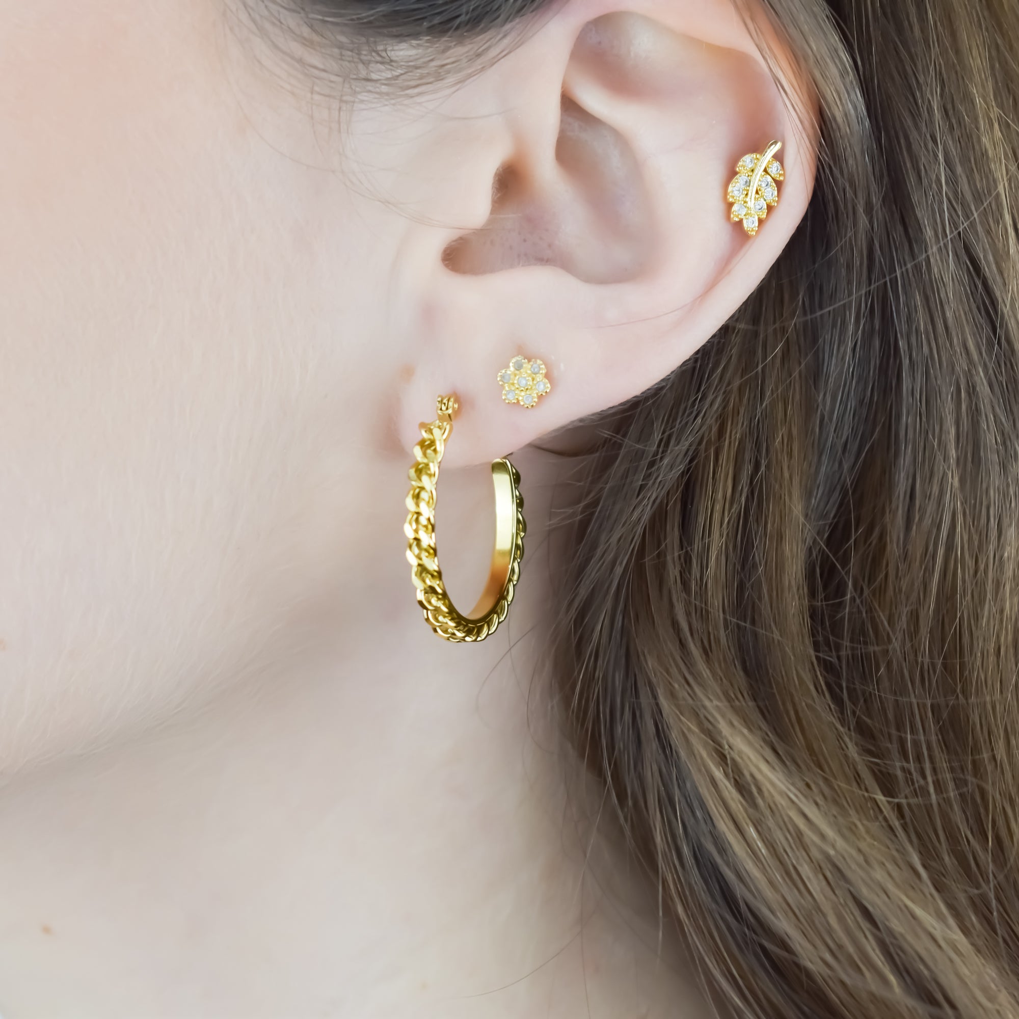 Estas argolas em aço inoxidável apresentam uma corrente única que adiciona um toque de originalidade e elegância ao seu visual. Com um design que combina perfeitamente a ousadia com a sofisticação, estas argolas são ideais para realçar a sua versatilidade e estilo pessoal. Use as Argolas Dahlia para adicionar um toque de modernidade e elegância ao seu look, destacando-se com distinção.
