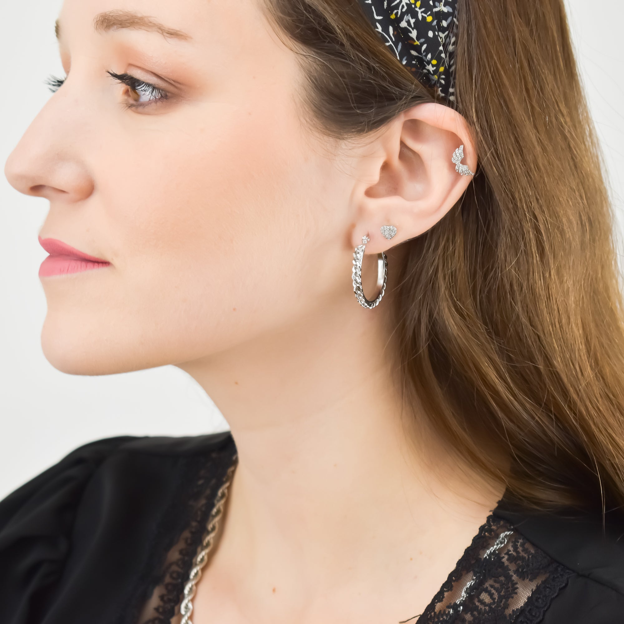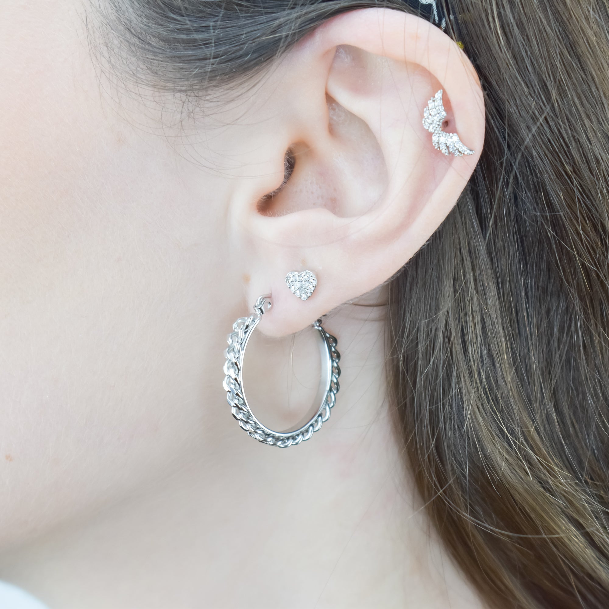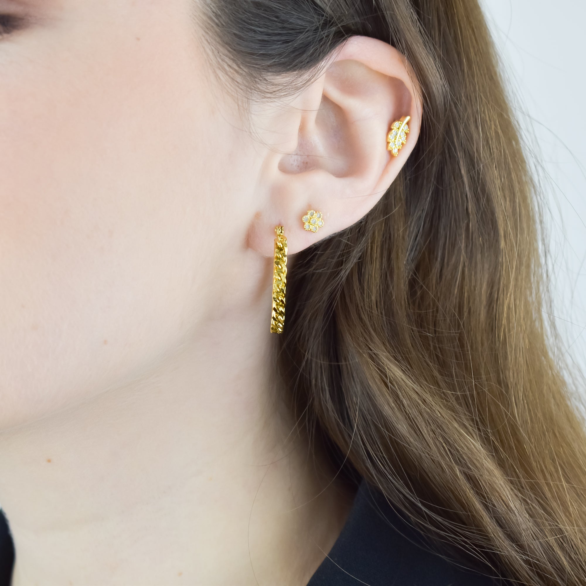AMANDA – Ear Cuff Individual com Corrente e Brinco com Brilhante