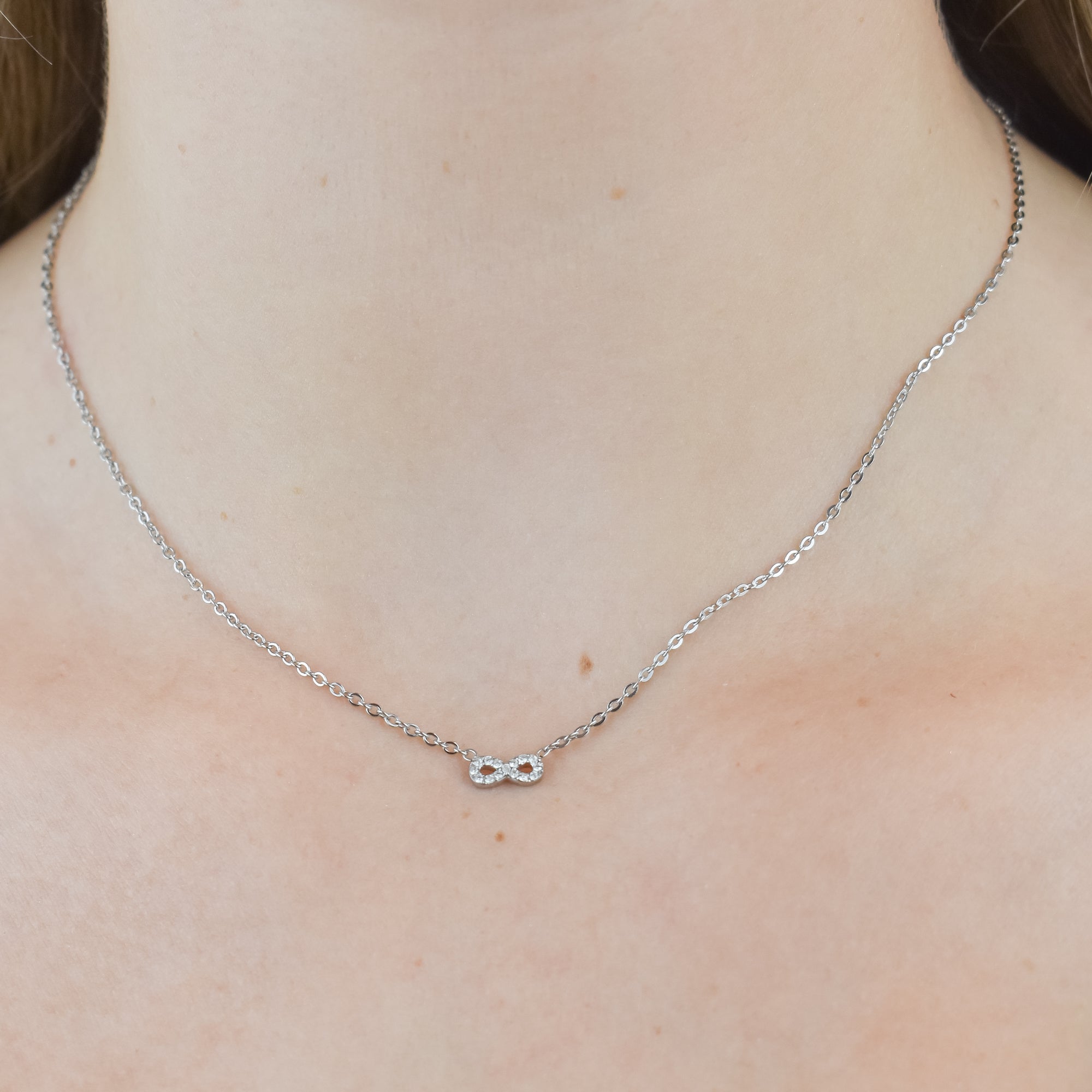 O colar Infinite em aço inoxidável é uma combinação perfeita de elegância intemporal e brilho deslumbrante, tornando-o uma escolha perfeita para quem busca um toque de sofisticação e significado duradouro.