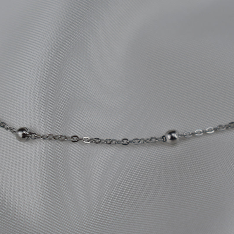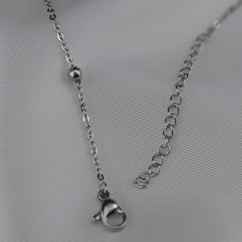 AURORA – Colar em Aço com Esferas e Medalha em Madrepérola com Rosa e Brilhante