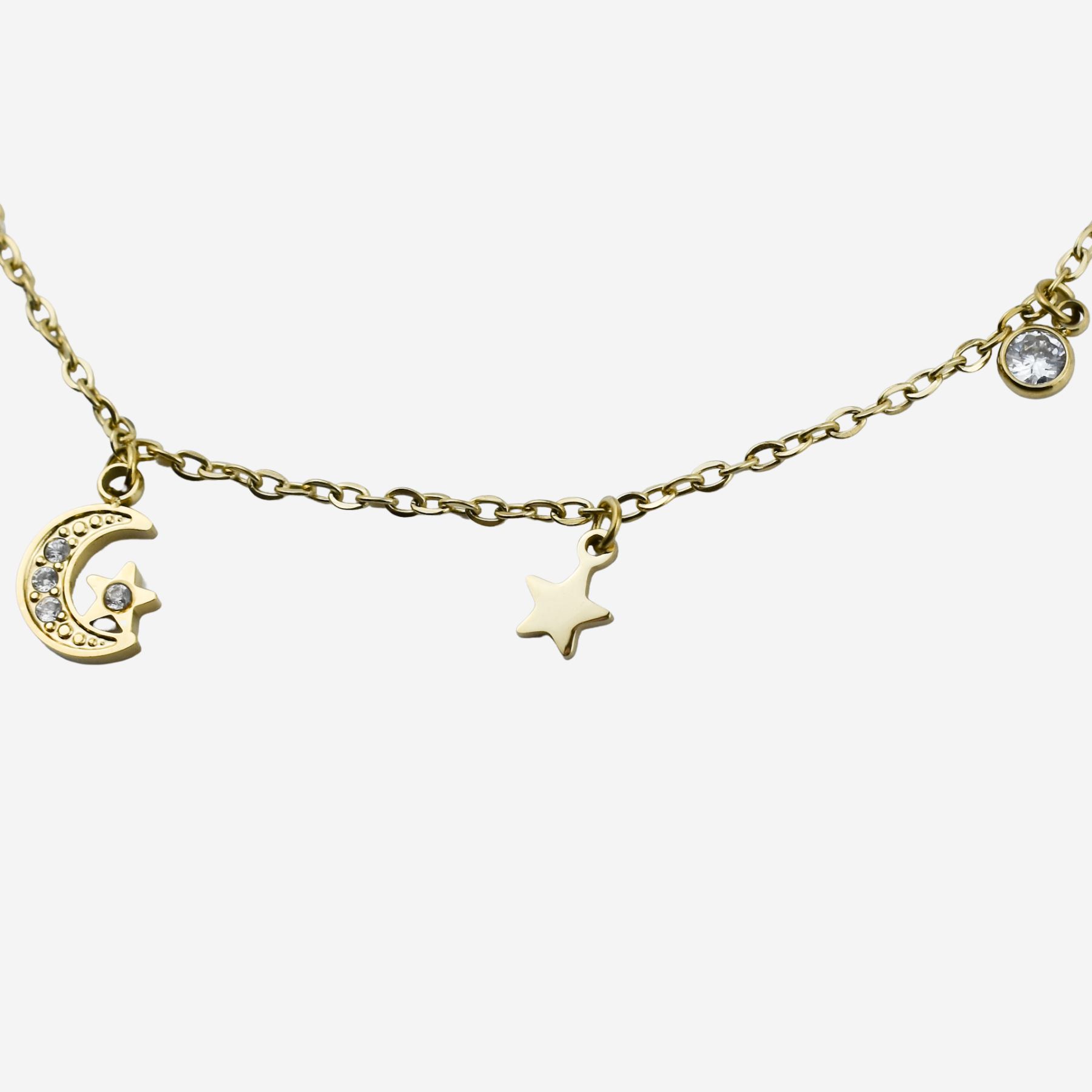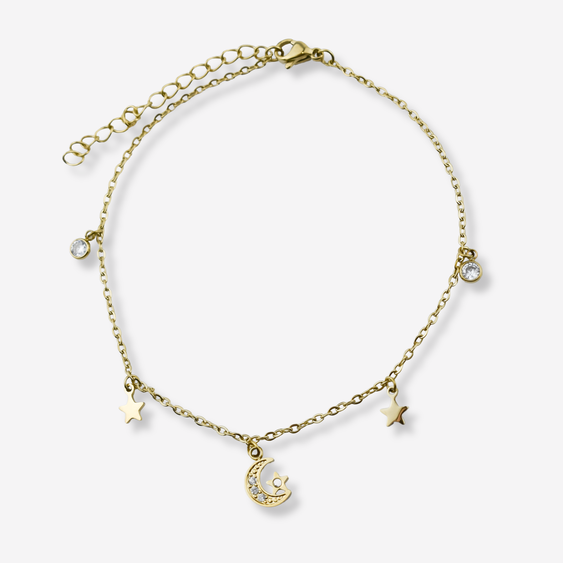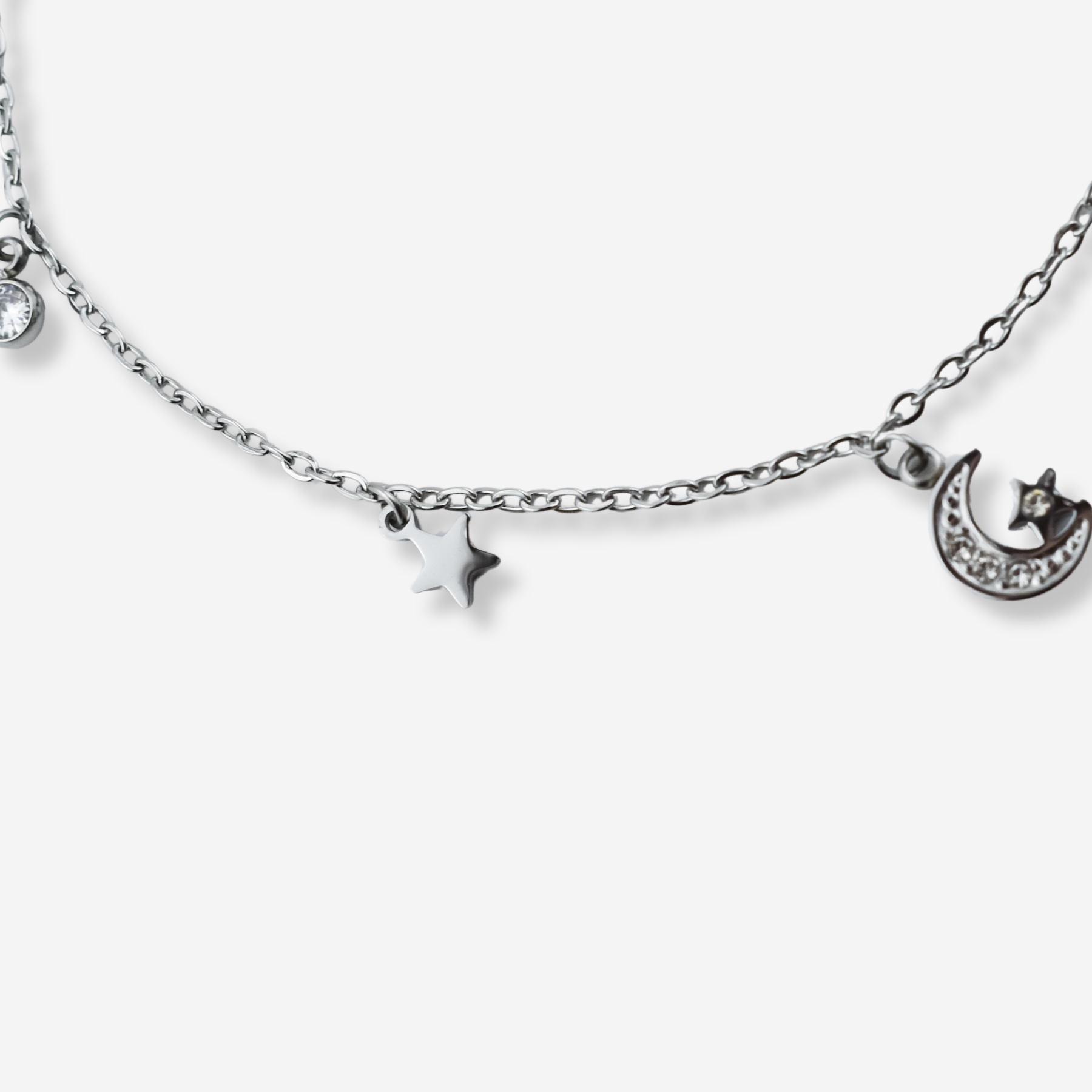 Tornozeleira Lua e Estrela em Aço Inoxidável