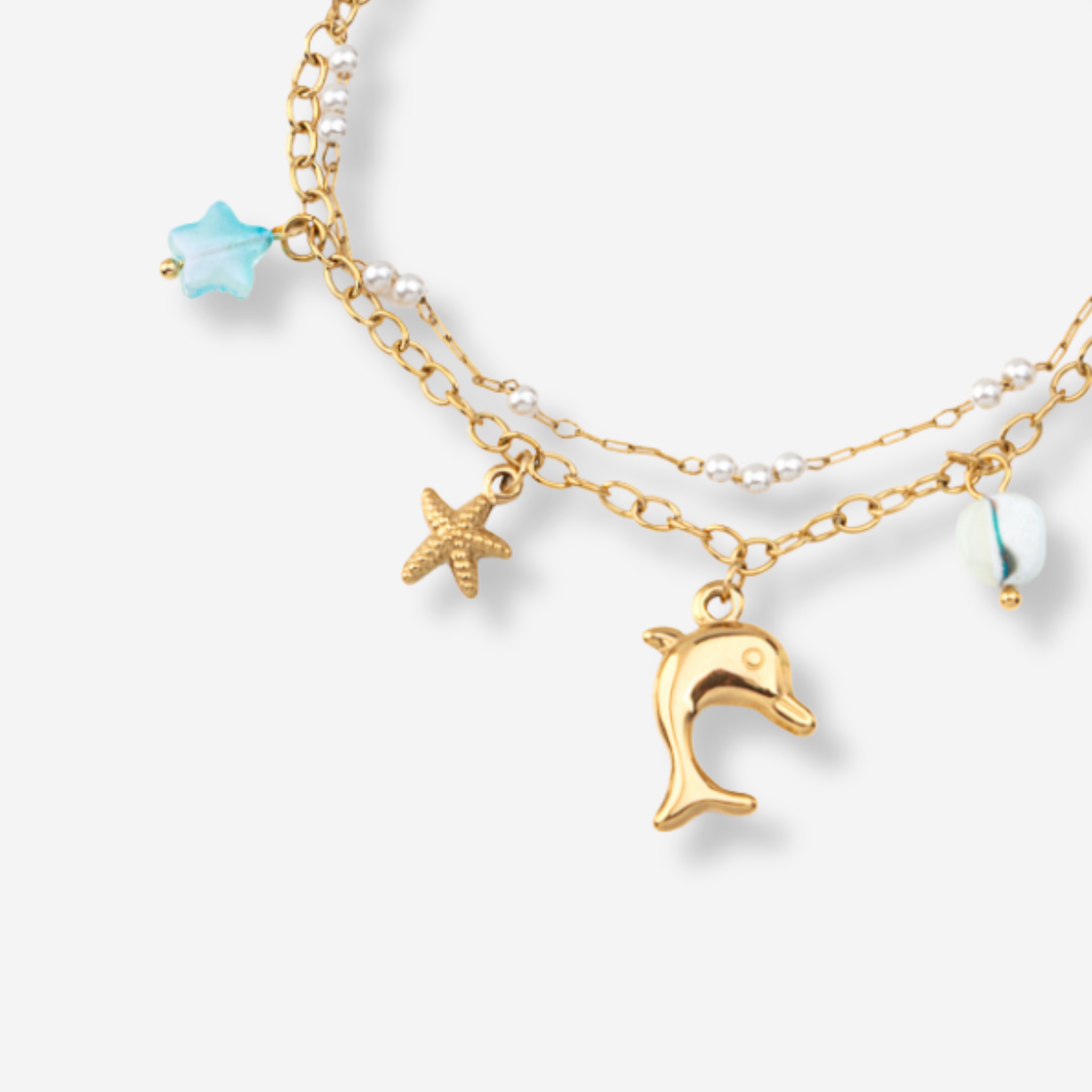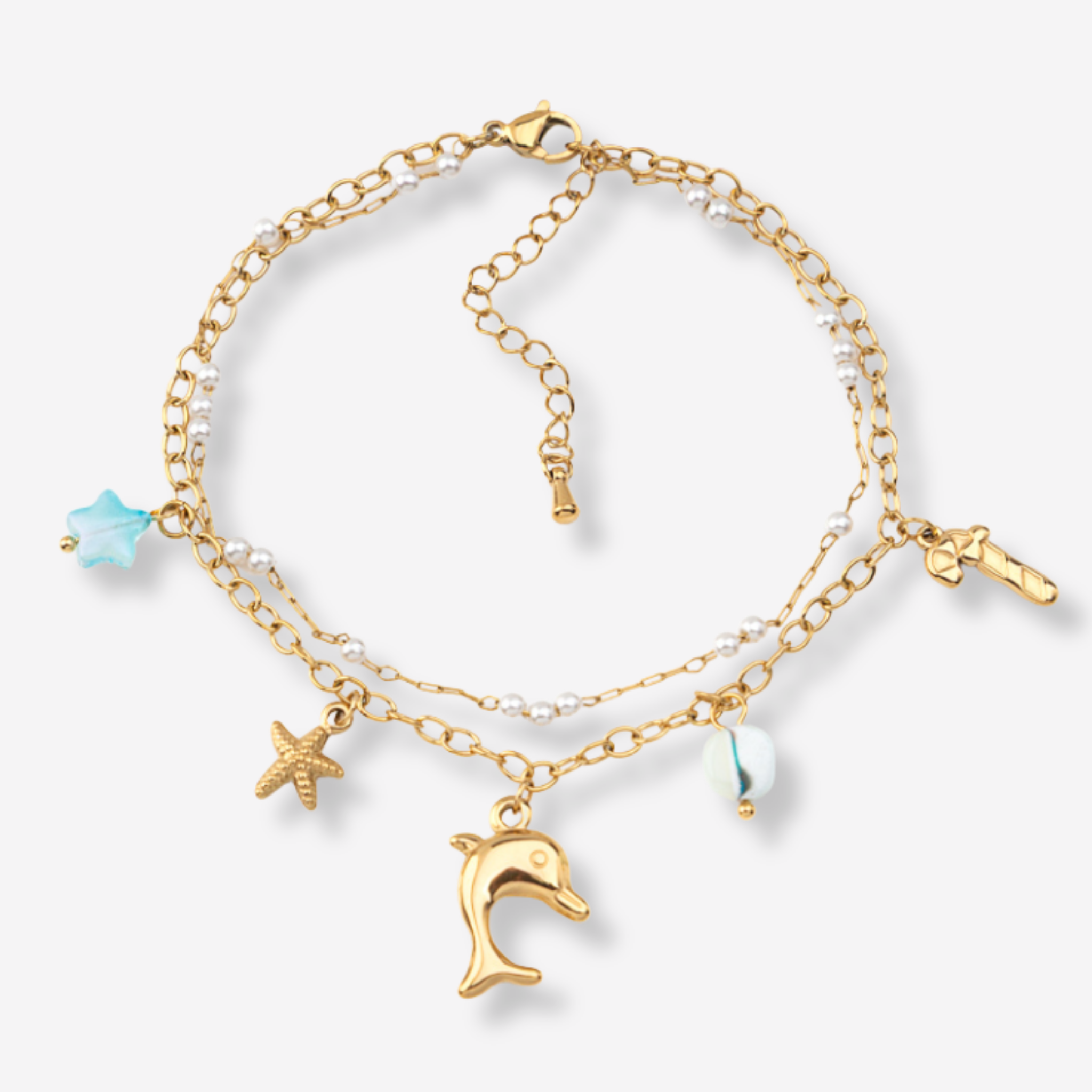 Tornozeleira Dupla Golfinho em Aço Inoxidável
